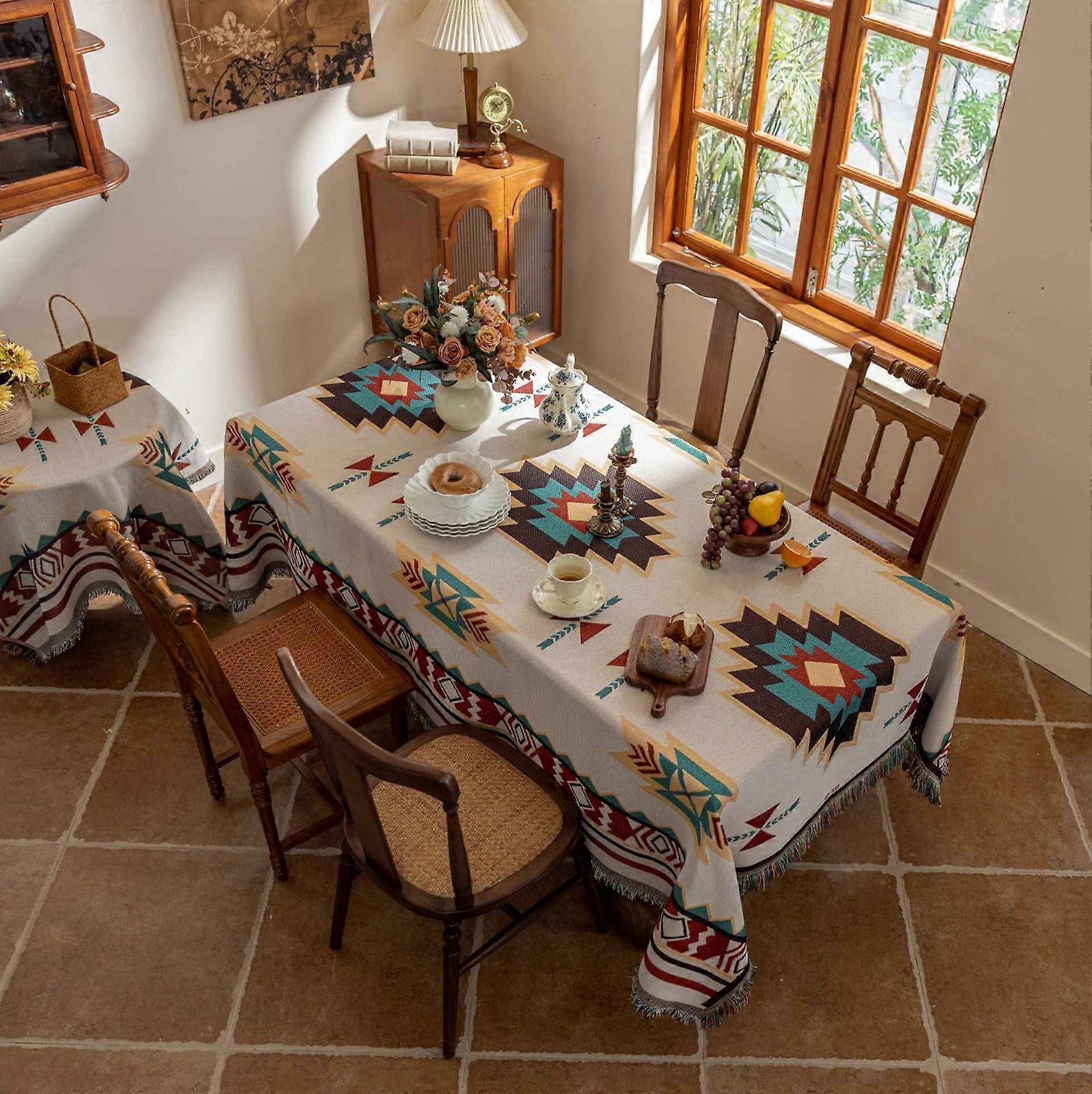Lmueinov Bohemian Cotton Yarn Tassel Tablecloth, Double-Sided, for Outdoor, Living Room, Camping, Picnic - 30% Off