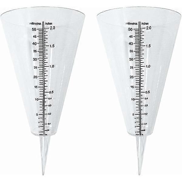 Rain Gauge, Outdoor Rain Gauge, 2 Transparent Cone Rain Gauges with Dual Scale for Monitoring Rainfall in Gardens, Outdoors and on Balconies