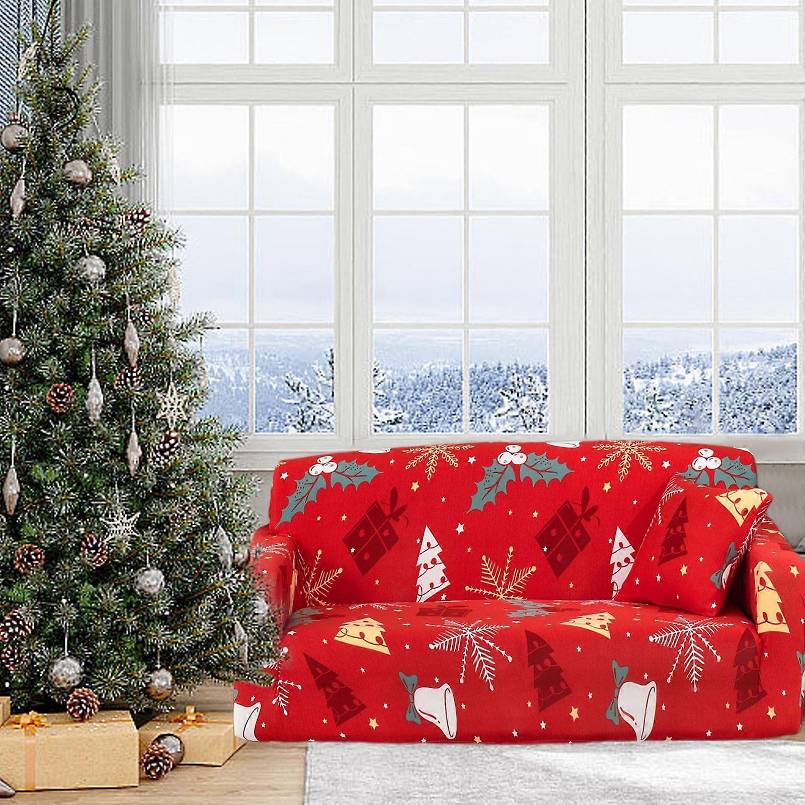 Christmas Printed 3-Seater Sofa Cover, Santa Claus Elastic Couch Slipcover, Machine Washable, Red Holiday Design, 55.1x35.4in