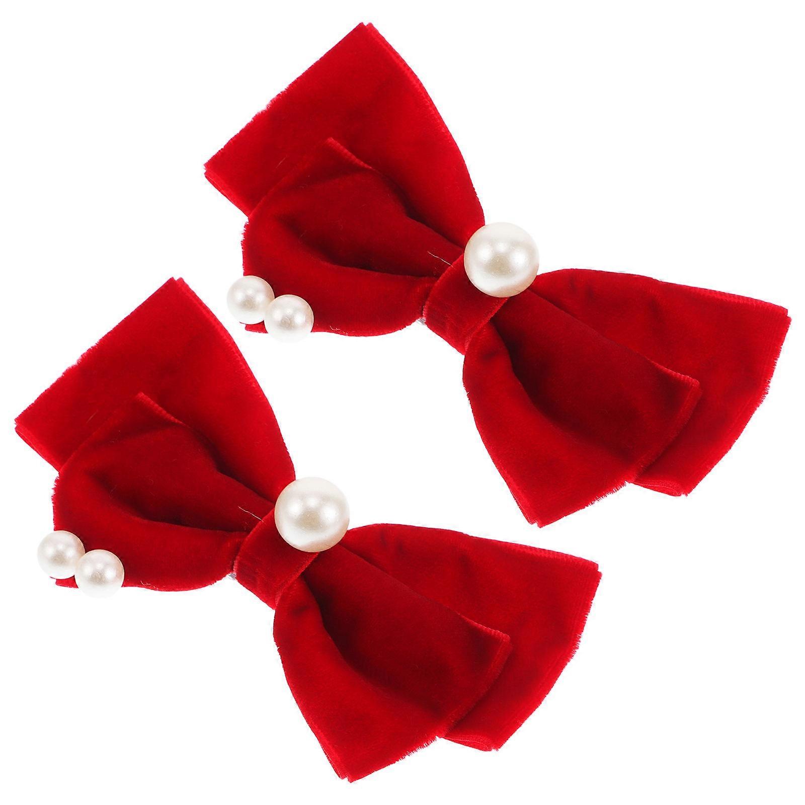 Large Bow Hair Clip 2Pcs Fashionable Velvet Bow Clips for Girls Perfect for Parties Weddings and Festivals Made of Red Material