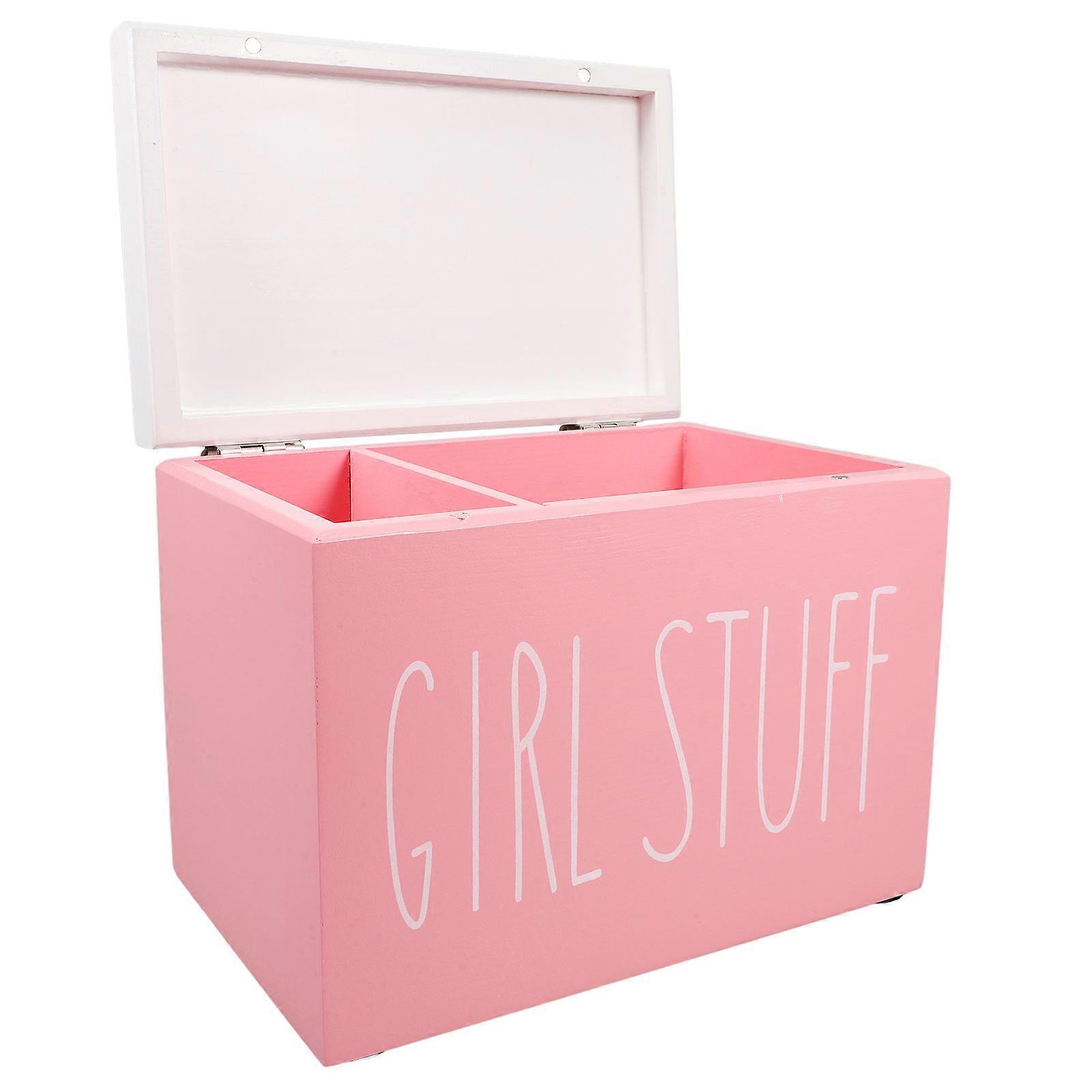 Pink Wooden Period Organizer for Bathroom with Lid Large Capacity Dust Protection Multifunctional Use 9.5x5.5x5.5 Inches