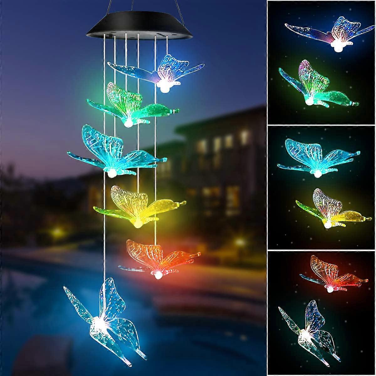 Solar Butterfly LED Wind Chimes Outdoor - Waterproof, Solar Powered Color-Changing Lights, 6 Butterflies Mobile for Garden, Party, Festival Decor