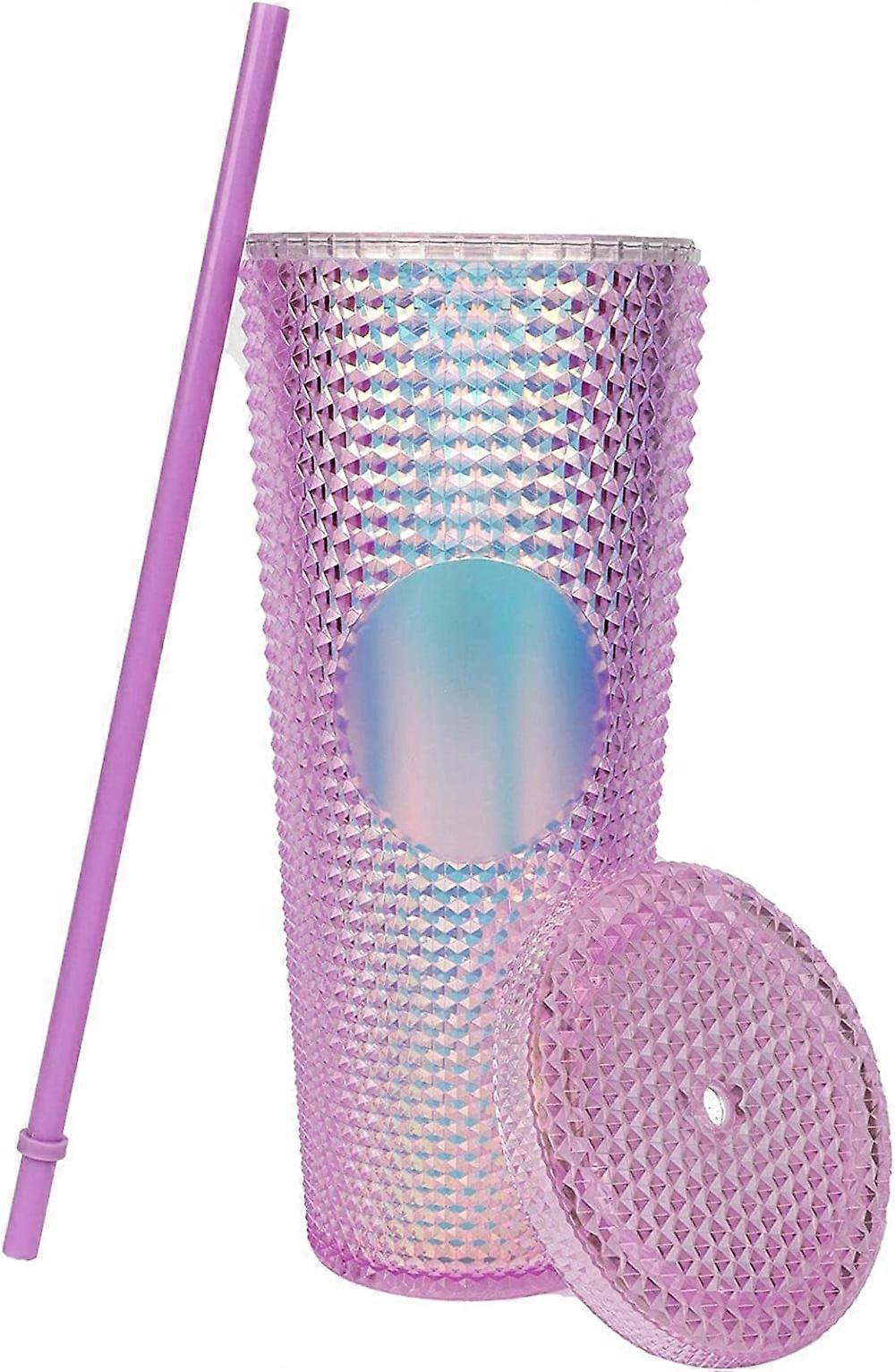 Happon Studded Plastic Tumbler 24 Oz, Ice Coffee Cup with Straw & Lid (Pink)