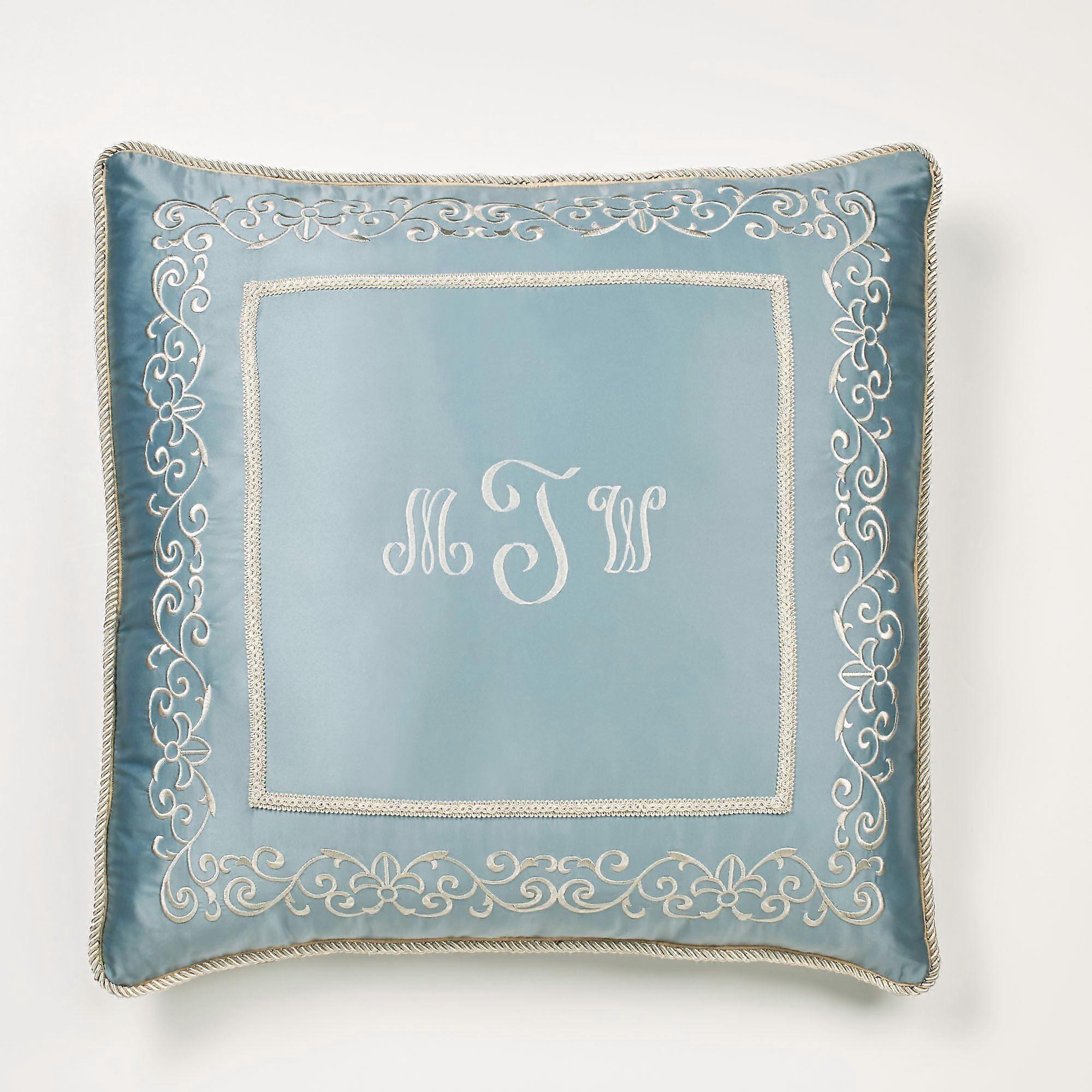 Romantic Regency Embroidered Scrolls on Parisian Blue Corded Sham Sham Piped European