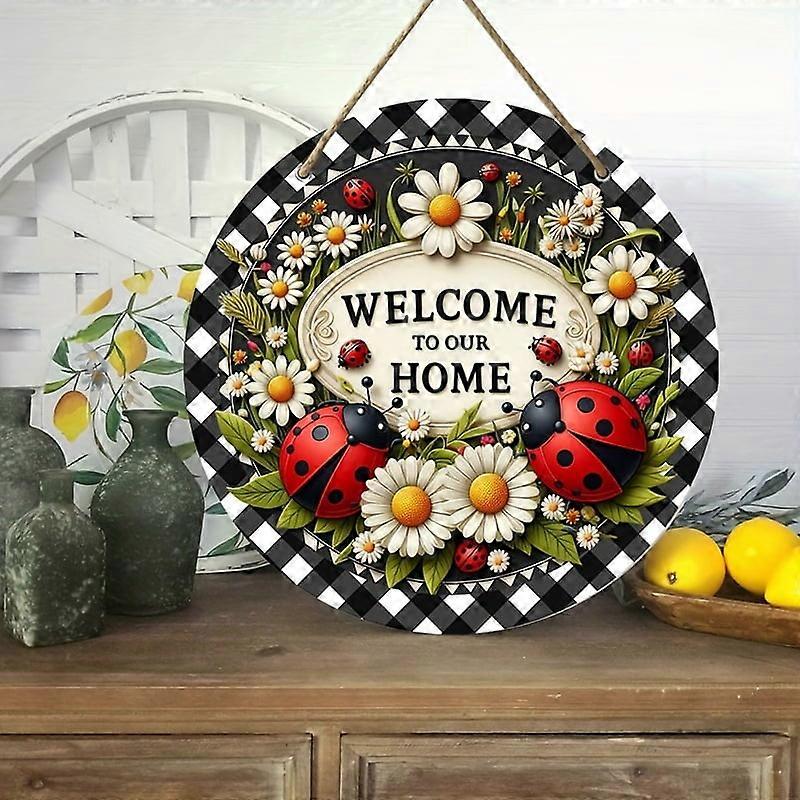1pc Wooden Hang Sign, Welcome To Our Home Ladybug And Daisy Spring Sign, Round Wreath Decor, Compatible with Home Room Craft Decoration, Backyard,