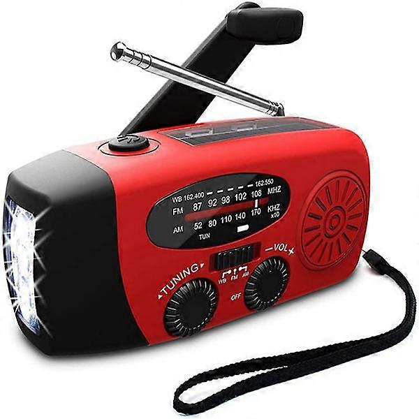 Red Crank Radio with Solar Cells, Flashlight and 2000mAh Powerbank Emergency Radio Red one size