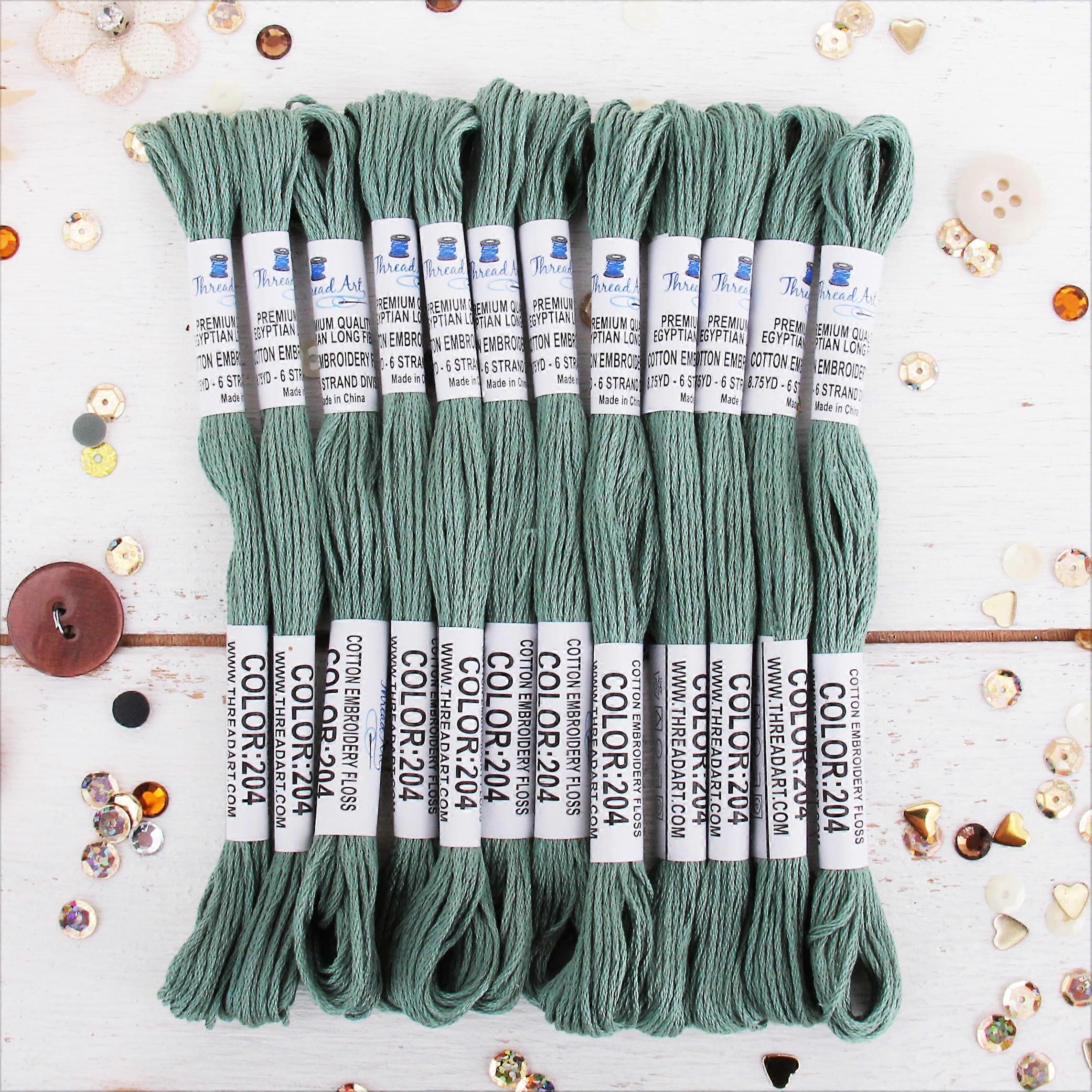 12 Skeins ThreadArt Premium Egyptian Cotton Embroidery Floss | Sea Green | 6-Strand Divisible 8.75yd Skeins for Hand Embroidery, Cross Stitch &