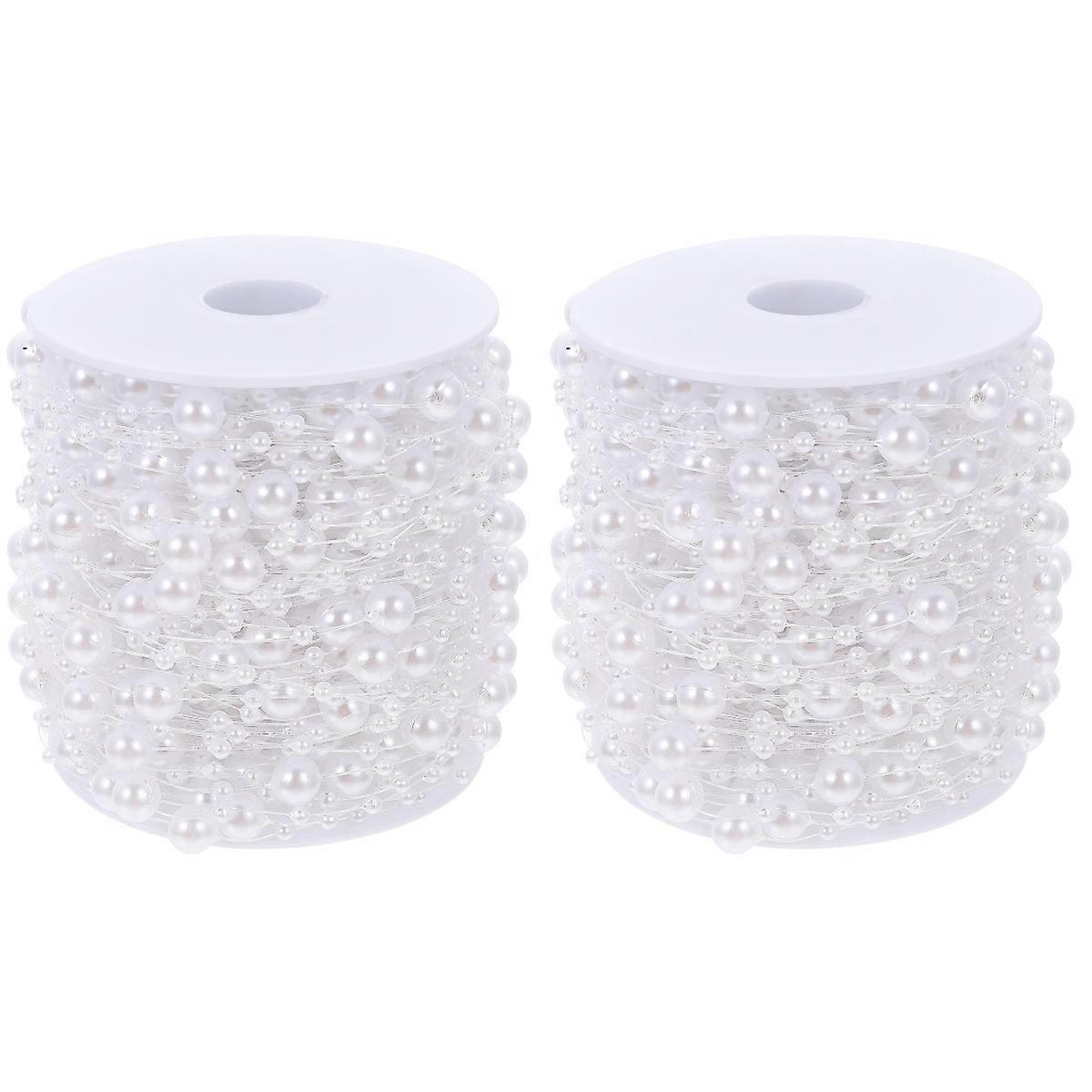 2 Rolls Christmas Wreath Beads Pearl Chains Craft Artificial Tree Ribbon Wreaths