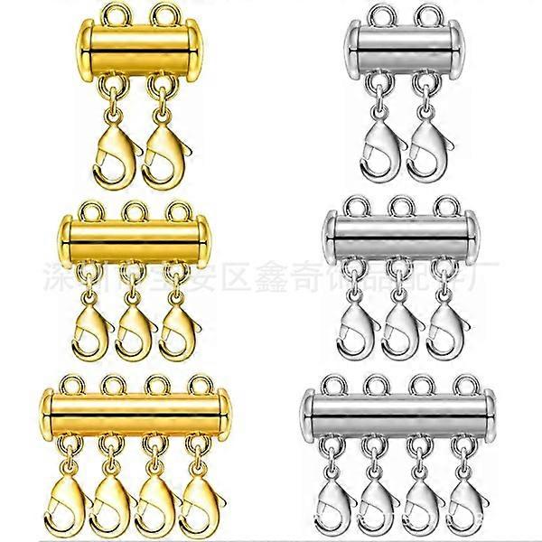 2-Pack Magnetic Bearing Necklace Clasps Lock Lock Necklace Clasp for Multi Slide Tube Clasps Golden Lobster Buckle 3 Rows