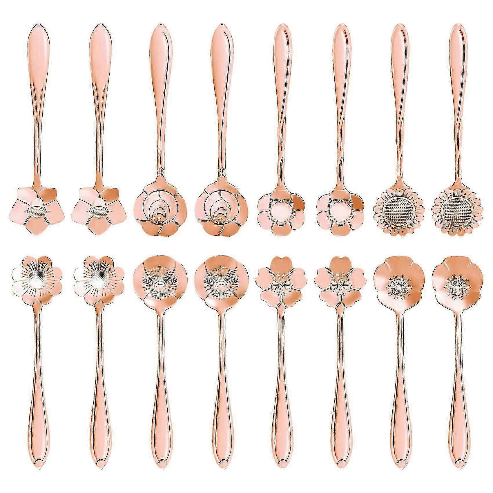 16 Pcs Set Stainless Steel Flower Coffee Spoon Dessert Sugar Ice Cream Stirring Tea Spoon Set suitable for K_Lucky_B