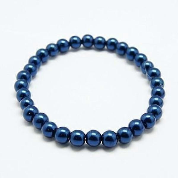 Elastic Bracelet with 6 mm.Blue Glass Beads MarineBlue Marine blue
