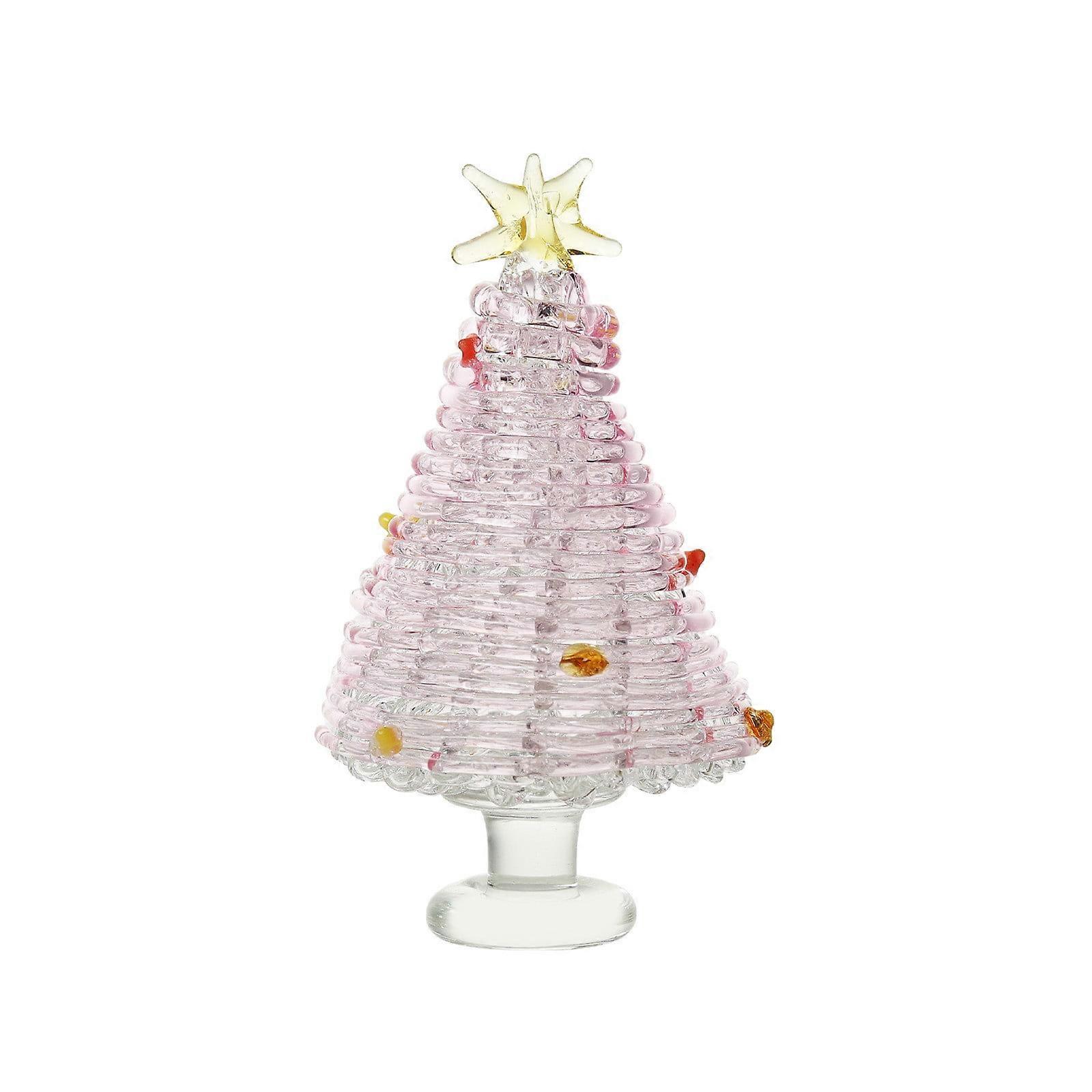 Miniature Pink Christmas Tree with Glass Ornaments, Small Lighted Scene, Crafts Decorations for Holiday and Xmas Party, Compatible with Deeceymbur