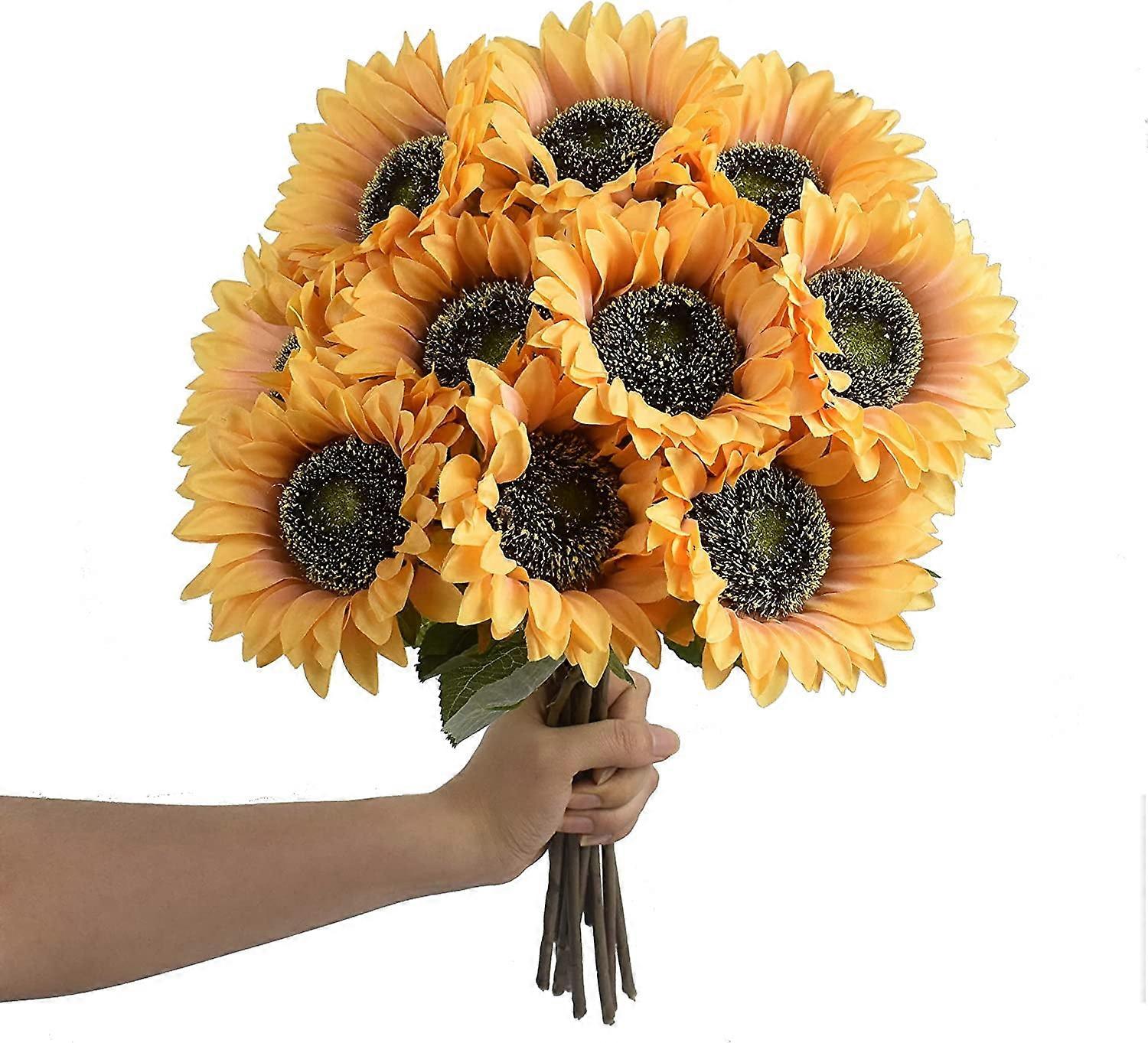 Zukuco 6 Pcs Artificial Sunflower Bouquet with Stems, Yellow Fake Sunflowers for Wedding, Home, Hotel, Office, Party Decor
