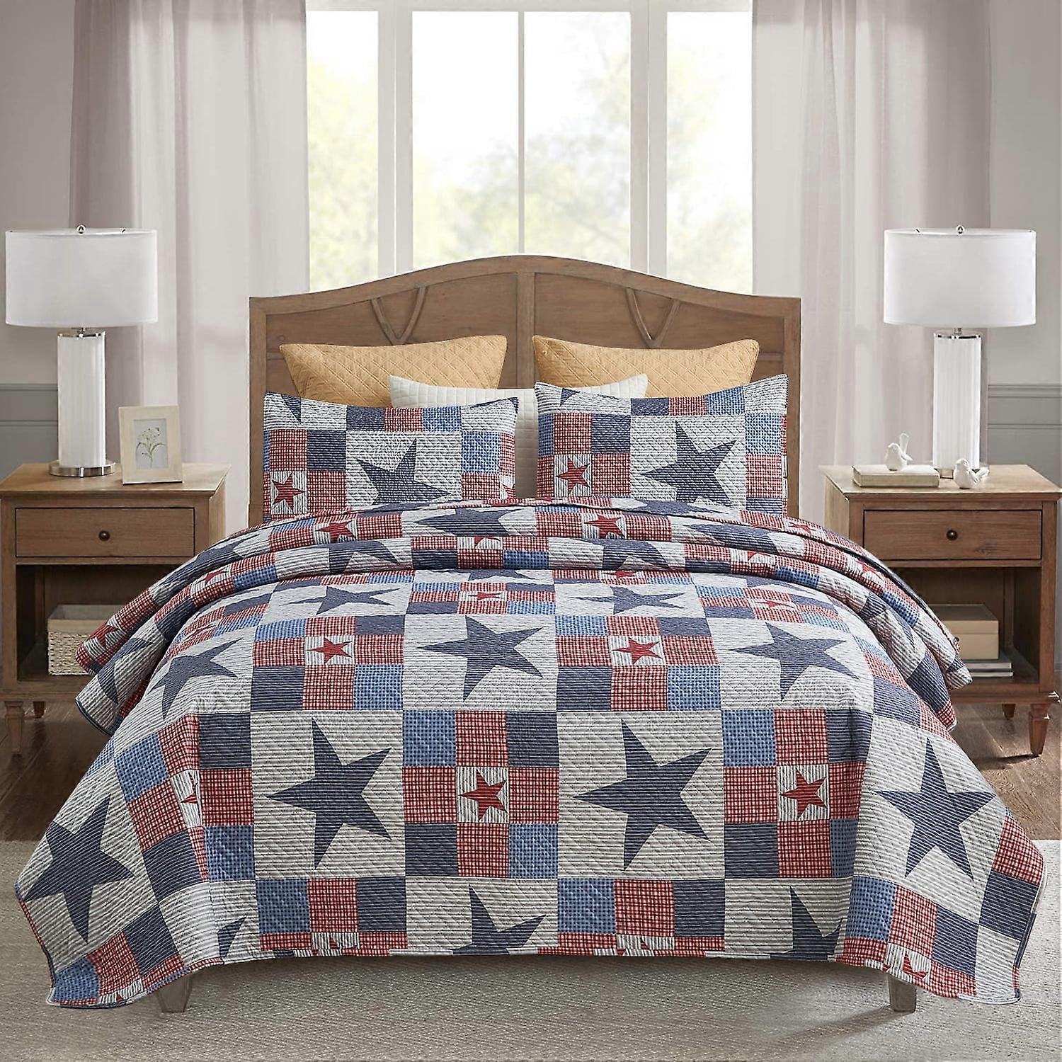 JML Quilt Set 3-Piece King Size, Soft Reversible 1 Quilt & 2 Shams Bedspread Coverlet Set, Navy & Red Stars