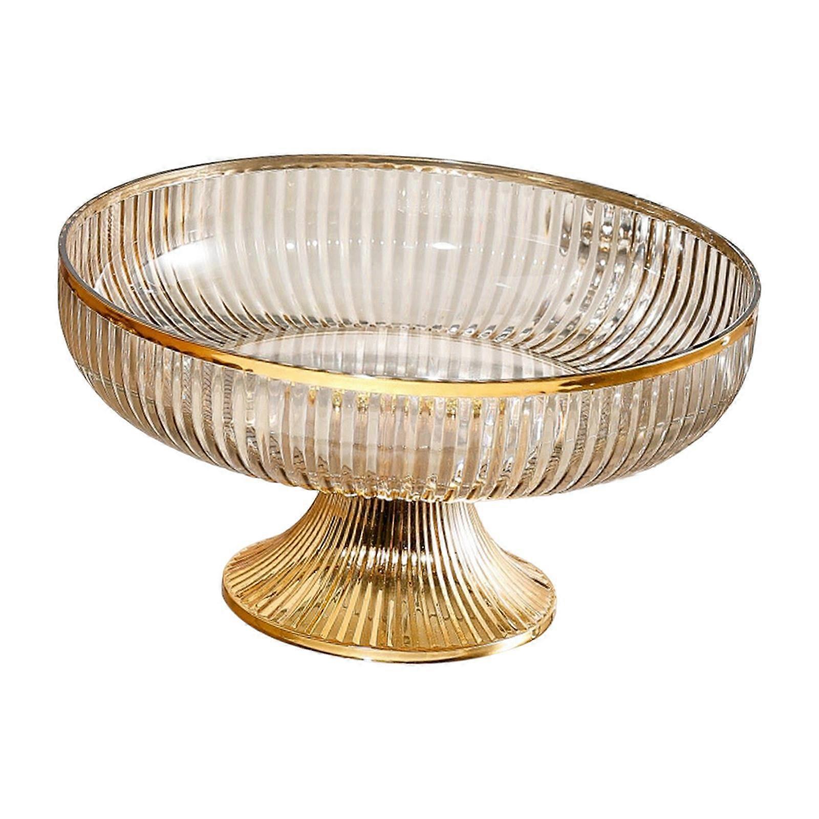 Pedestal Fruit Bowl, Decorative Salad Bowl with Amber Aureate Edge, Nordic Eggs Bowl, Durable Holder for Farmhouse Centerpiece