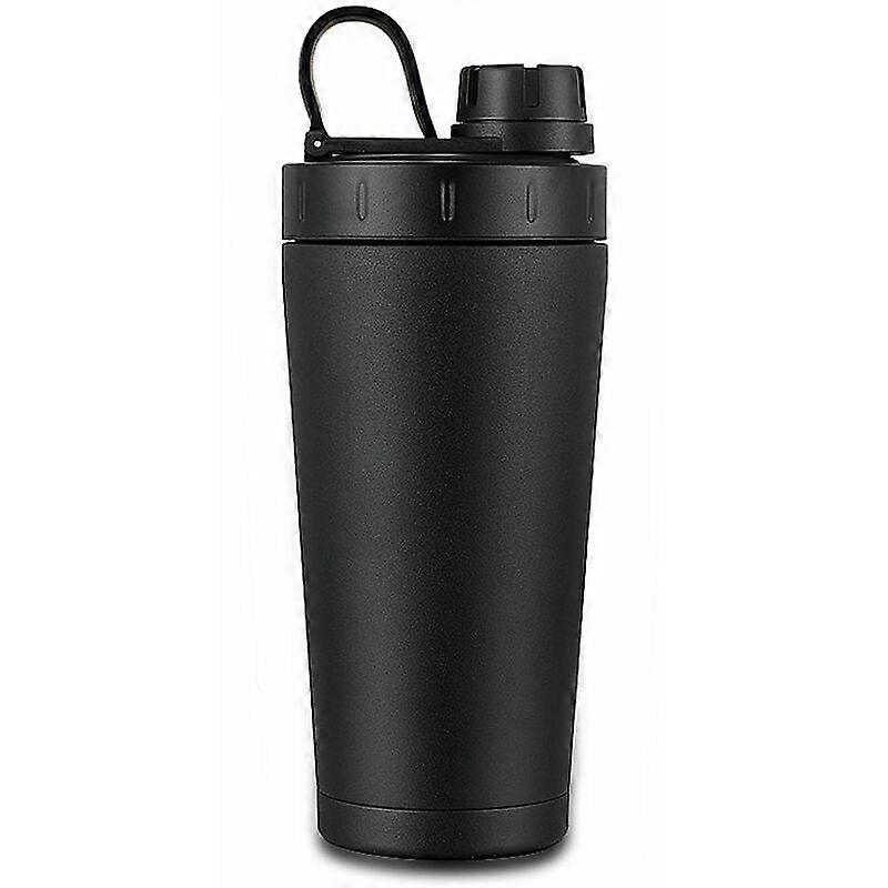 Stainless steel protein shaker, insulated, keeps hot/cold, dishwasher safe, double-walled, odor-resistant, black