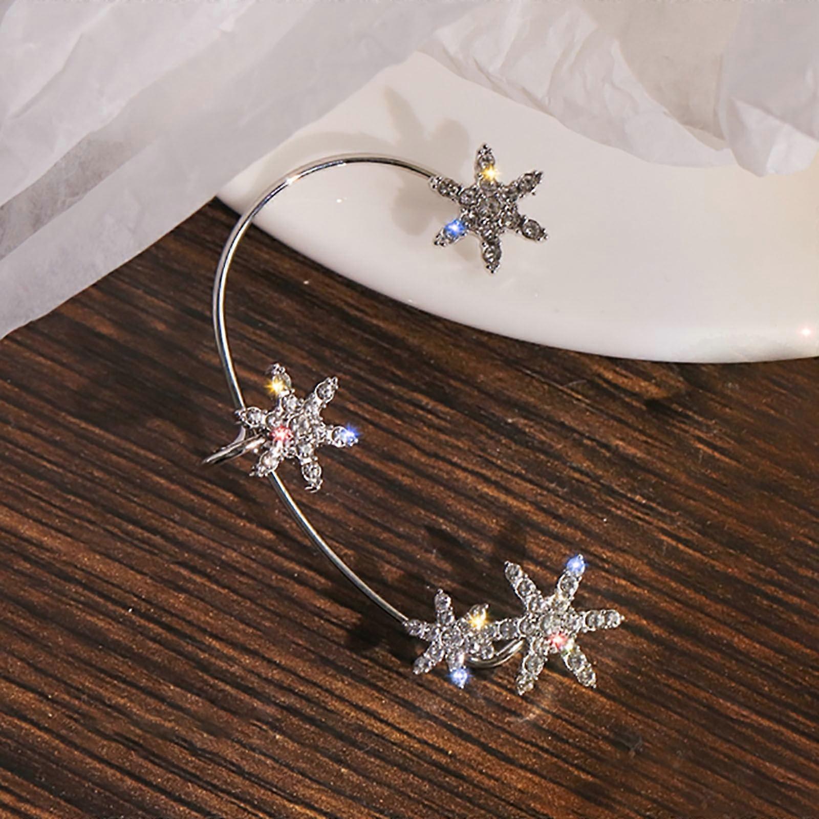 Christmas Deals SHOPESSA Christmas Gifts Jewelry Women's Fashion Diamond Silver Snowflake Earrings Without Pierced Ear Clip Earrings 1PC on Clearance