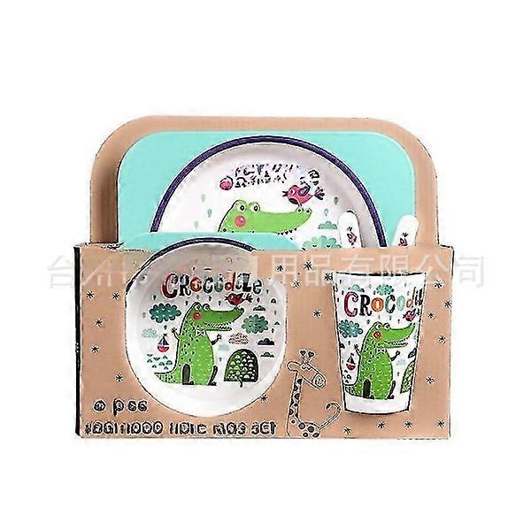 Creative New Bamboo Fiber Children's Dinnerware Set Five Piece Set Preschool Baby Crocodile Five.piece.set.with.box