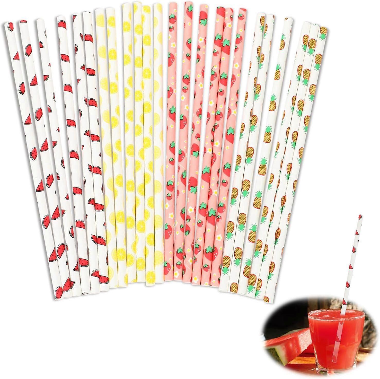 100 Pcs Paper Straws Compatible with Fruit, Strawberry, Watermelon - Decorative Disposable Straws for Cocktails, Juice, Shakes, Party Supplies