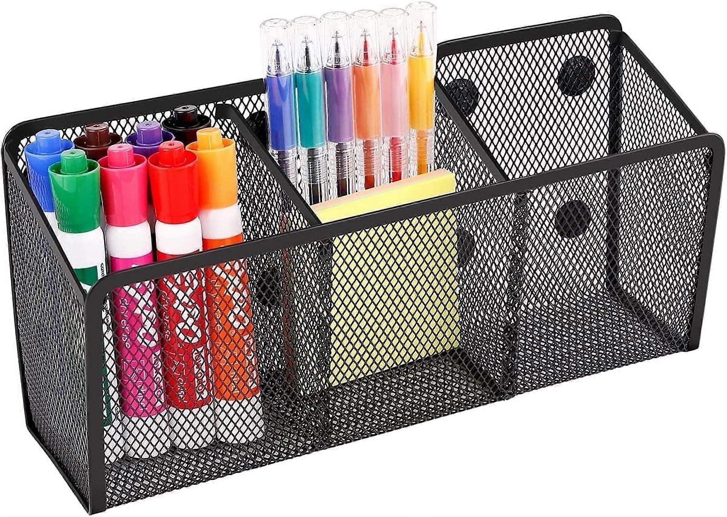Magnetic Mesh Pen Holder, 3-Compartment Stainless Steel Pencil Basket, compatible with Casewin, for Whiteboard Fridge Locker
