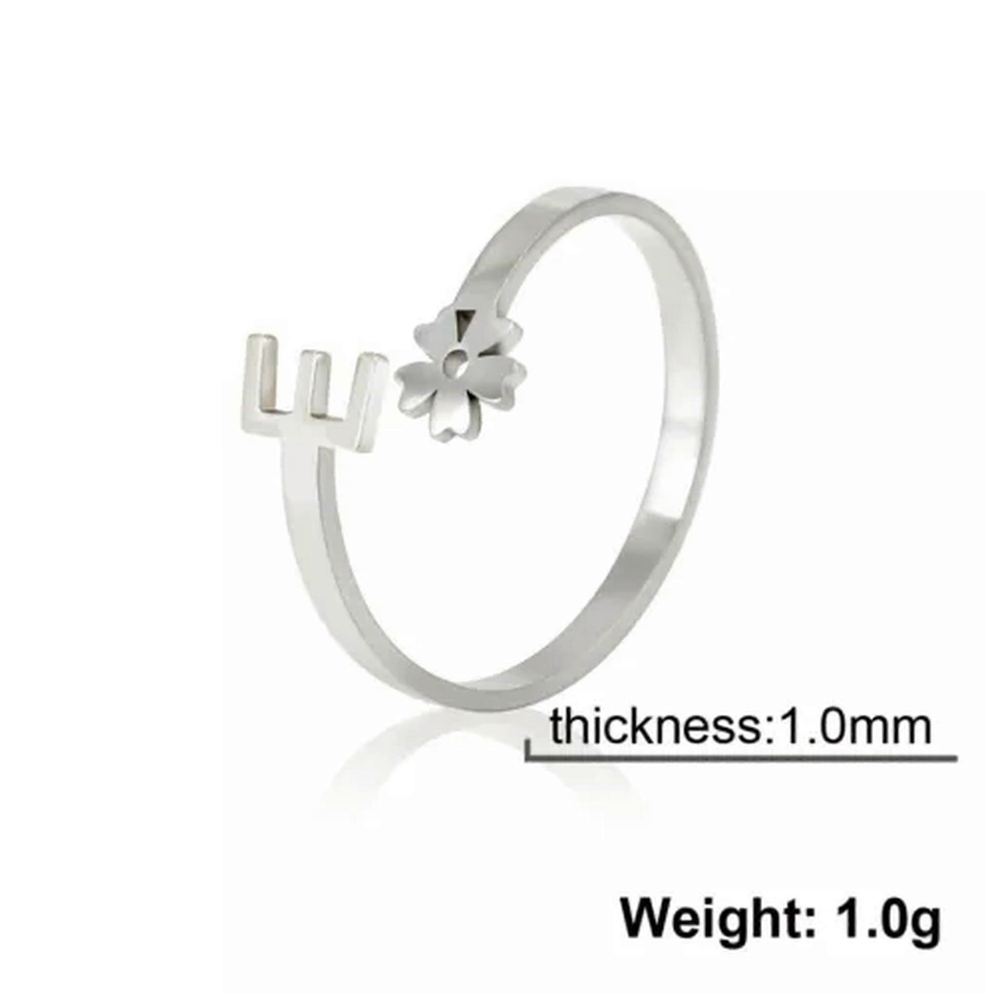 RSAMD Initial Letter Alphabet Women's Stainless Steel Rings Adjustable Daisy Jewelry-Adjustable-E Steel