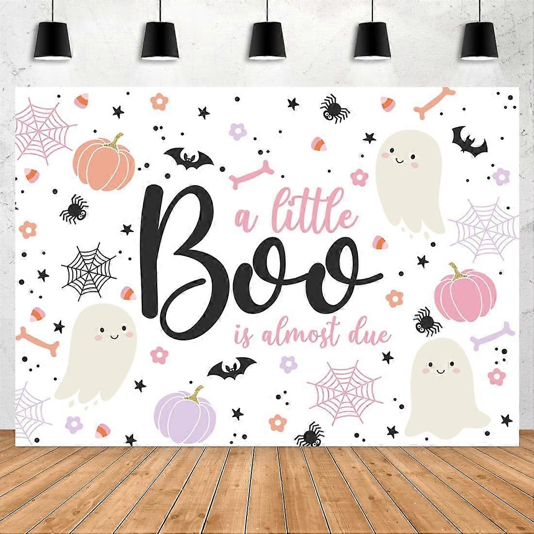 7x5ft Halloween Baby Shower Backdrop - A Little Boo is Almost Due, Blush Pink Pumpkin Skull Spider Web Bat, Compatible with Photography Background