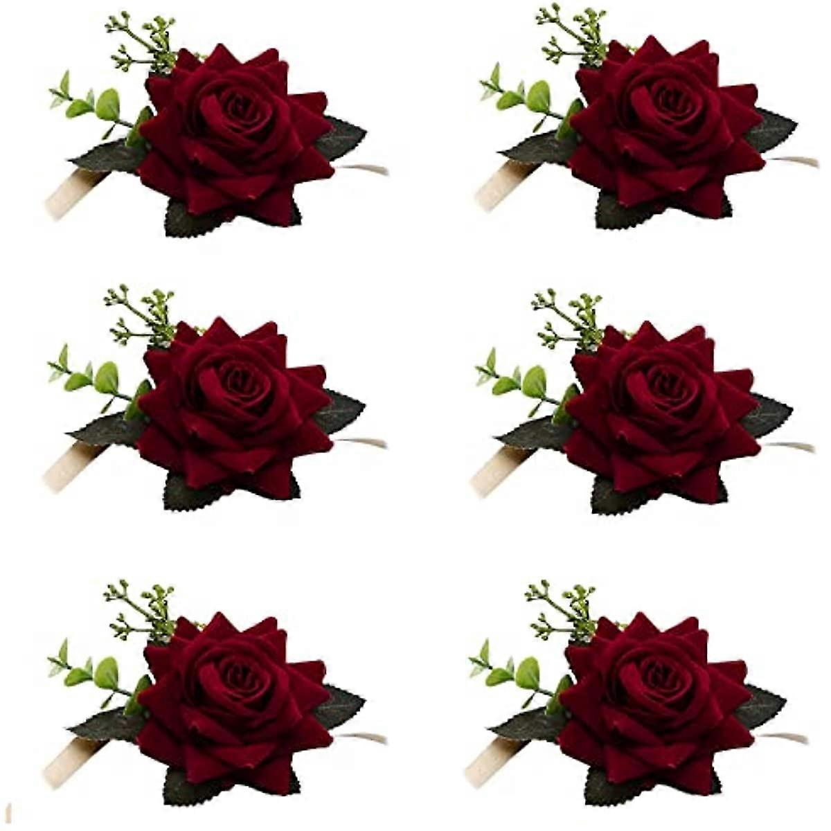Wedding Wrist Flower Set of 6, Wine Red Rose Wrist Corsage, Artificial Flowers for Bride, Bridesmaid, Prom, Party Decorations