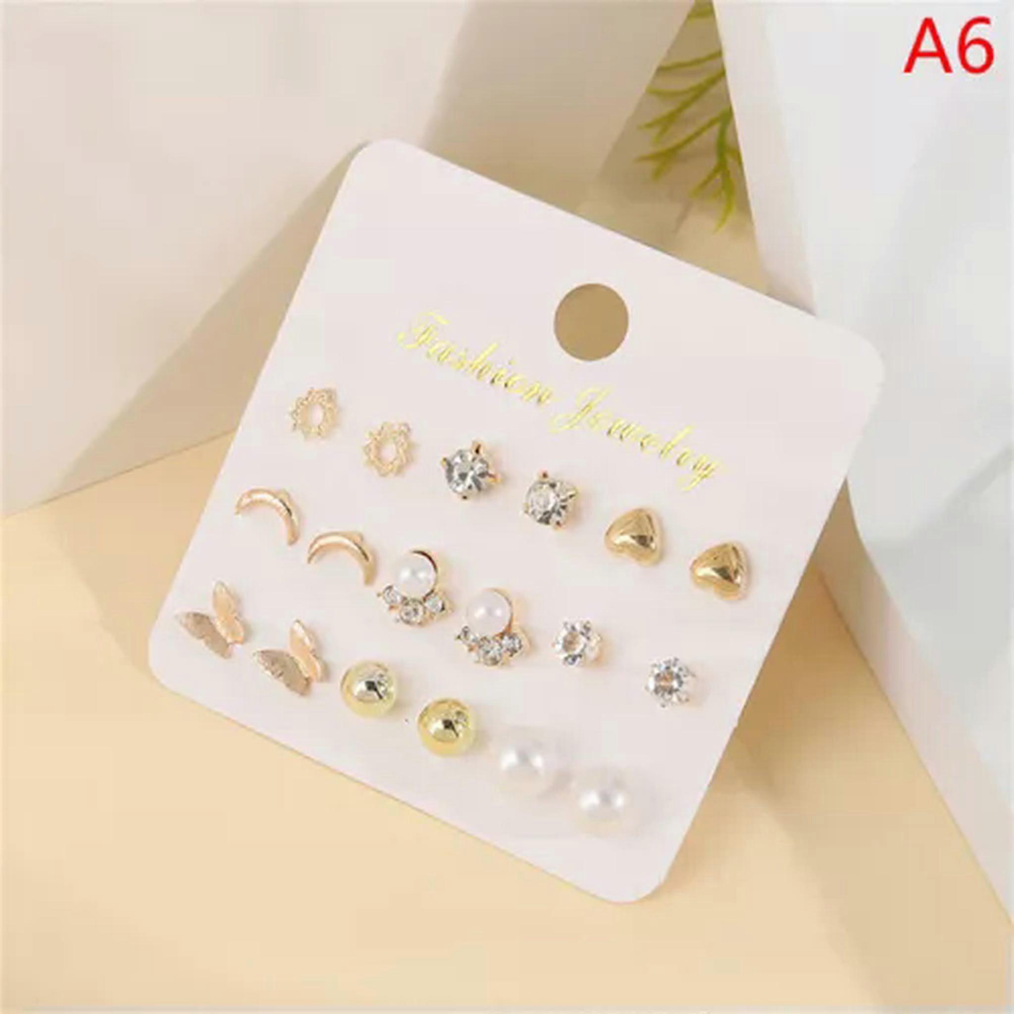 RSAMD 12 Pairs/Set Women's Pearl Flower Crystal Mix Design Studs Earrings Girls-A6