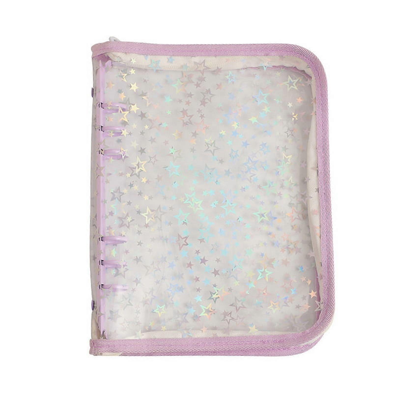 A5 Budget Binder Cover with Zipper, Glitter Stars A5 6 Ring Binder Planner, Clear PVC Refillable Notebook Shell