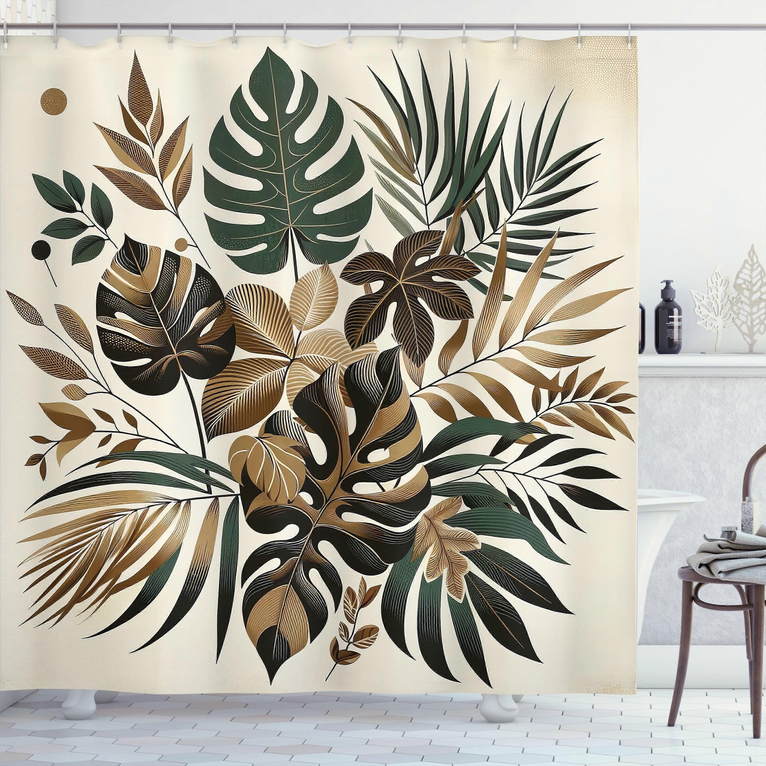 Ambesonne Brown Shower Curtain, Exotic Retro Leaves Botanical, 69"Wx84"L, Ivory Forest Green and Cocoa
