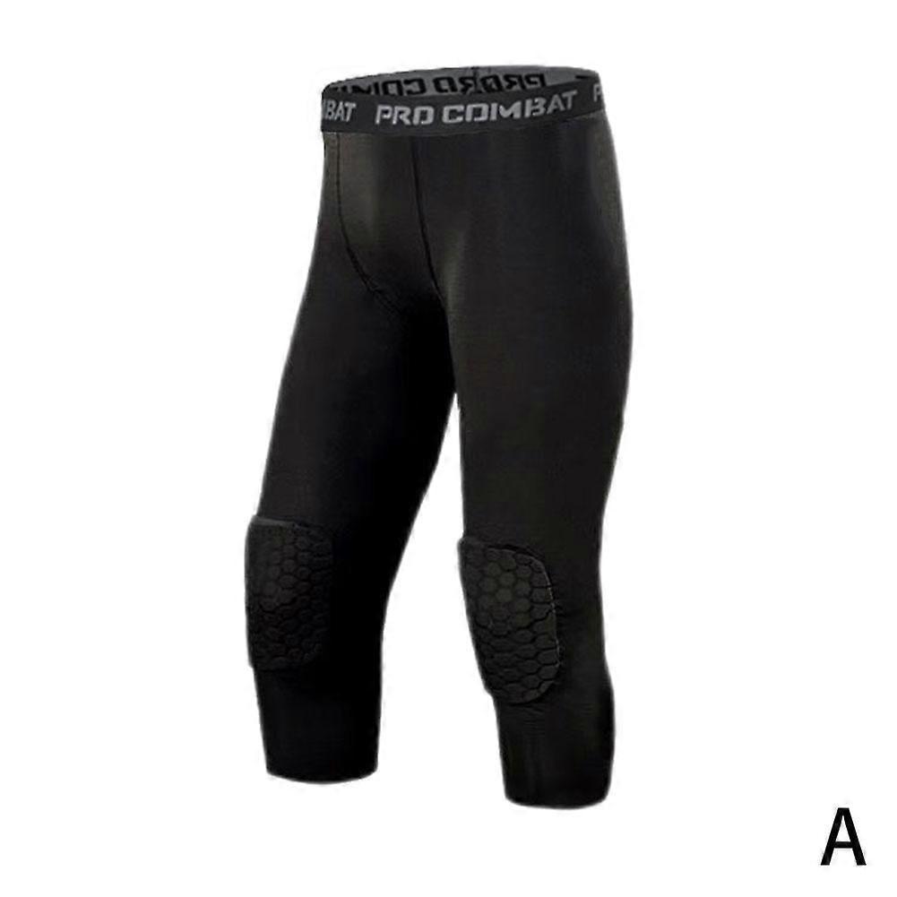 Men's Safety Anti-Collision Pants Basketball Training 3/4 Tights Leggings With Knee Pads Protector Sports Compression Trousers H0B2