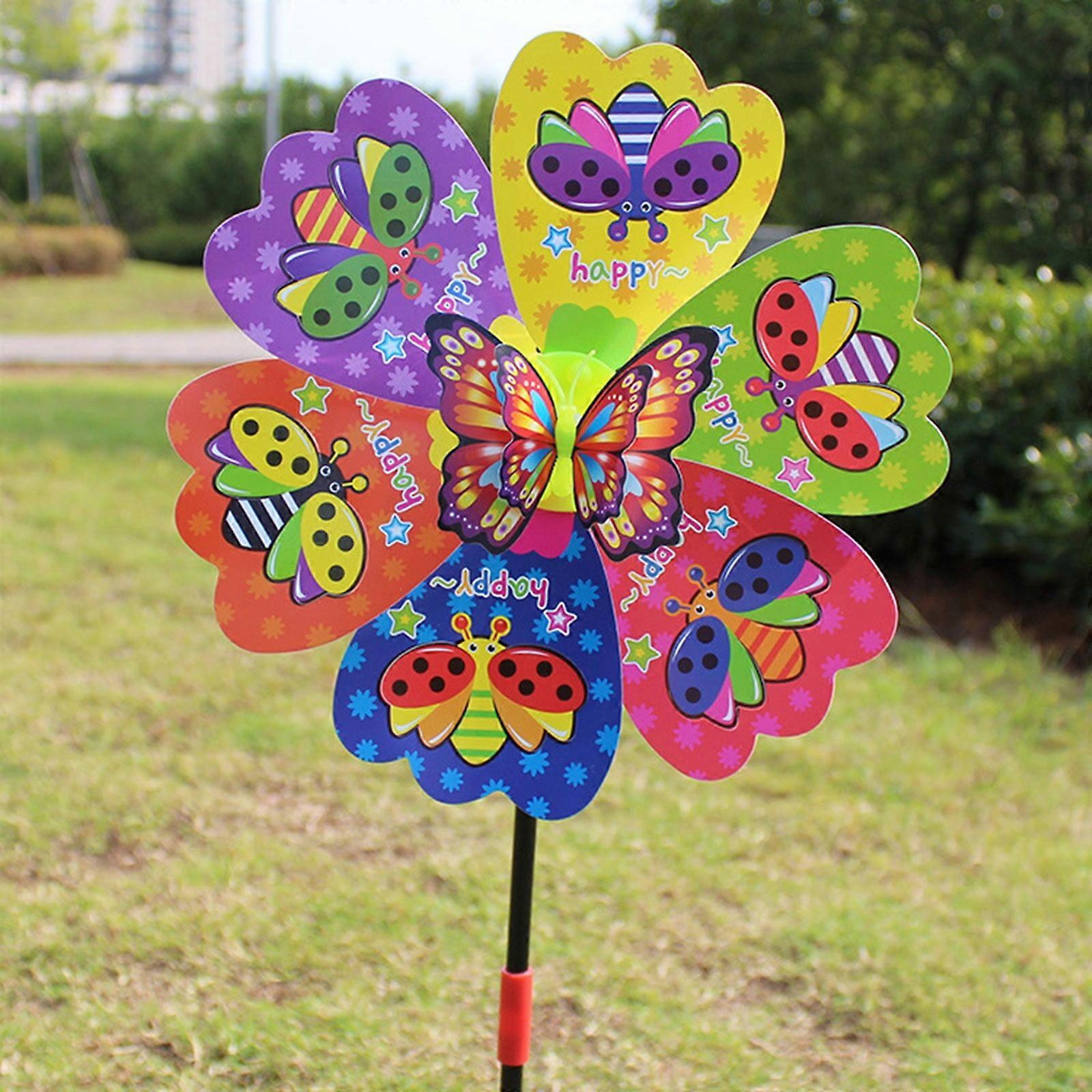 VISALY Handheld Windmill Kindergarten Outdoor Decoration Flower 3D Butterfly Colorful Plastic Windmill
