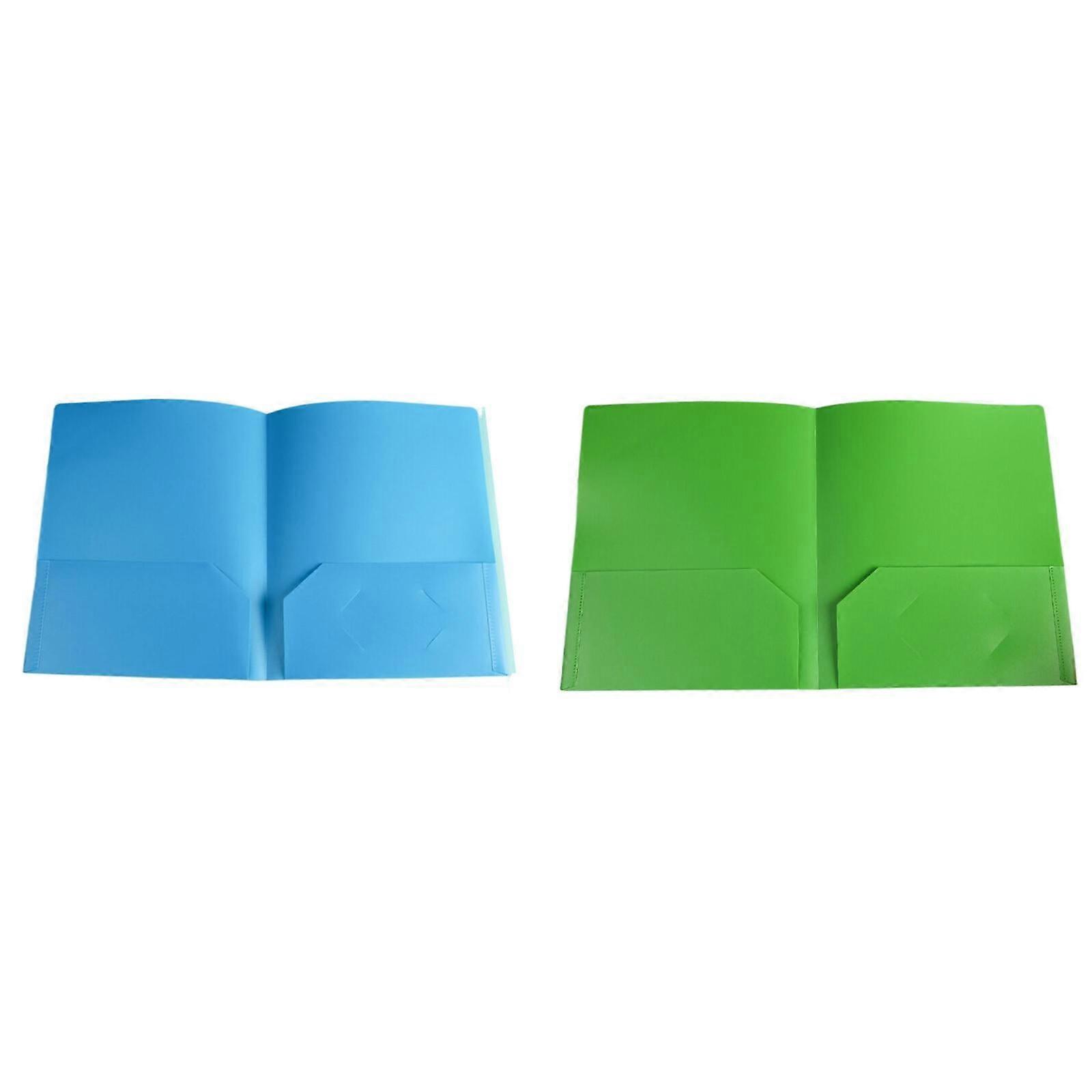 LKWLPD 2 Pcs Heavy Duty Plastic Folders with Pockets, No Prongs, for Letter Paper & Business Cards, Blue & Green