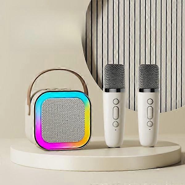 Karaoke Machine for Kids and Adults, Portable Bluetooth Mini Karaoke Microphone Singing Speaker with 2 Microphones and Lights, Toys White
