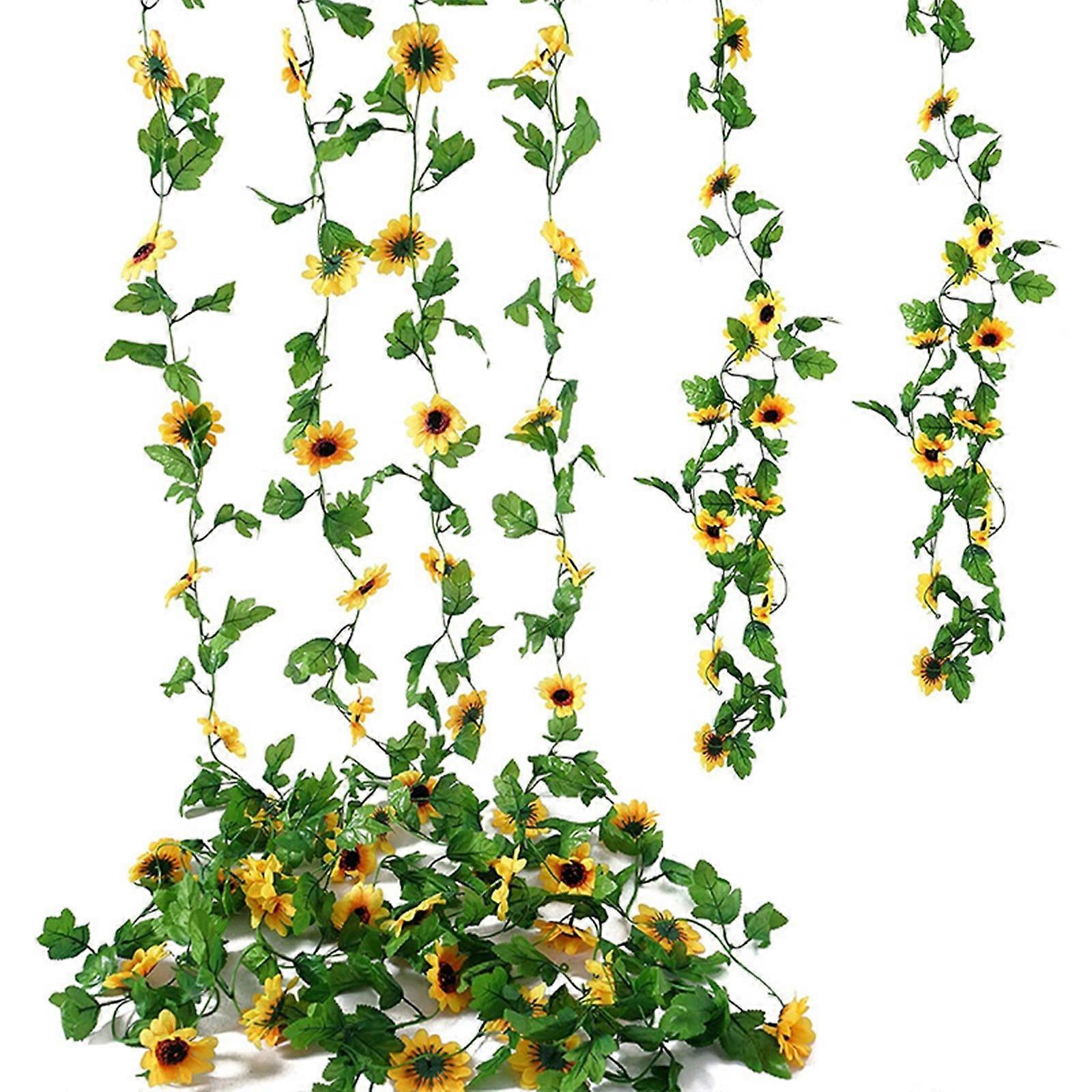 Miayilima 7.8 Ft Artificial Sunflower Garland, 1Pcs Silk Yellow Vine Flowers for Indoor, DIY Faux Rattan Decor, compatible with Home, Office, Garden,
