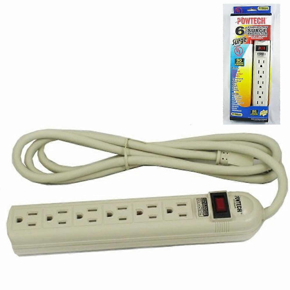 Description:: 1 New 6 Outlet Power Strip With Surge Protector 6 ft Cord 6outlet 90 Joules UL Listed ! The brand new 6 outlet power strip and surge protector comes with a reset circuit breaker. Comes with a heavy duty surge protector with built-in brackets. Good for use in the home for home entertainment and major appliances and in an office for computer hardware, office products, equipment and or shop and hobby use. Measures 6 ft. long. Specifications: Maximum energy dissipation 120V AC lines: 90 Joules. AC Protection (H-N). Maximum Spike Current: 120V AC Line: 4,500 Amps. UL listed lowest clamping voltage: 120V AC lines < 330 volts. Clamping response time: < 1Ns (Nanoseconds = 1x 10 seconds). Features:: * Heavy duty surge protector * 6 foot long cord * AC-125 V * 14 AWG cord * 15 AMPS * 90 JOULES of protection * Lighted switch * Built in brackets for easy mounting * UL listed * 1875 watts * Color- ivory Package Contents - Accessories Included:: 1 New Heavy Surge Protector Power Strip With 6 Outlets