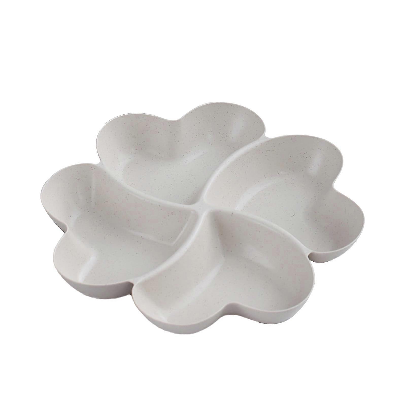 JeashCHAT 4-Section Plastic Serving Tray, Flower-Shaped Snack Plate for Party - White