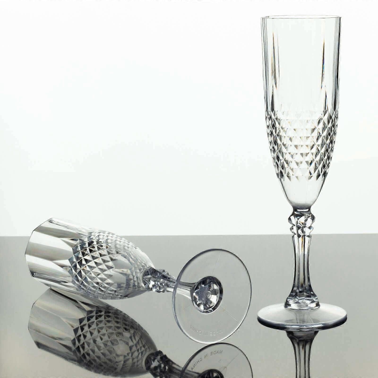 Efavormart 6 Pack | 8oz Clear Crystal Cut Plastic Champagne Flute Glasses