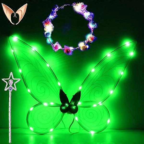 Sparkling Fairy Wings for Adults, LED Headbands for Carnival and Theme Parties Star Green Star Green Star Green