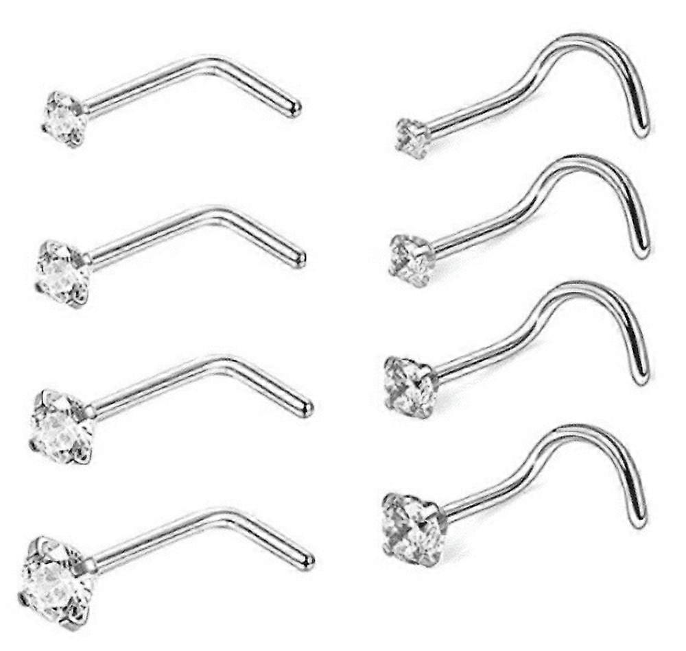 Bouanq 18G Stainless Steel Screw Bend Nose Stud Rings Tragus Lip Hoop Piercing Jewelry 1.5-3mm gifts for women