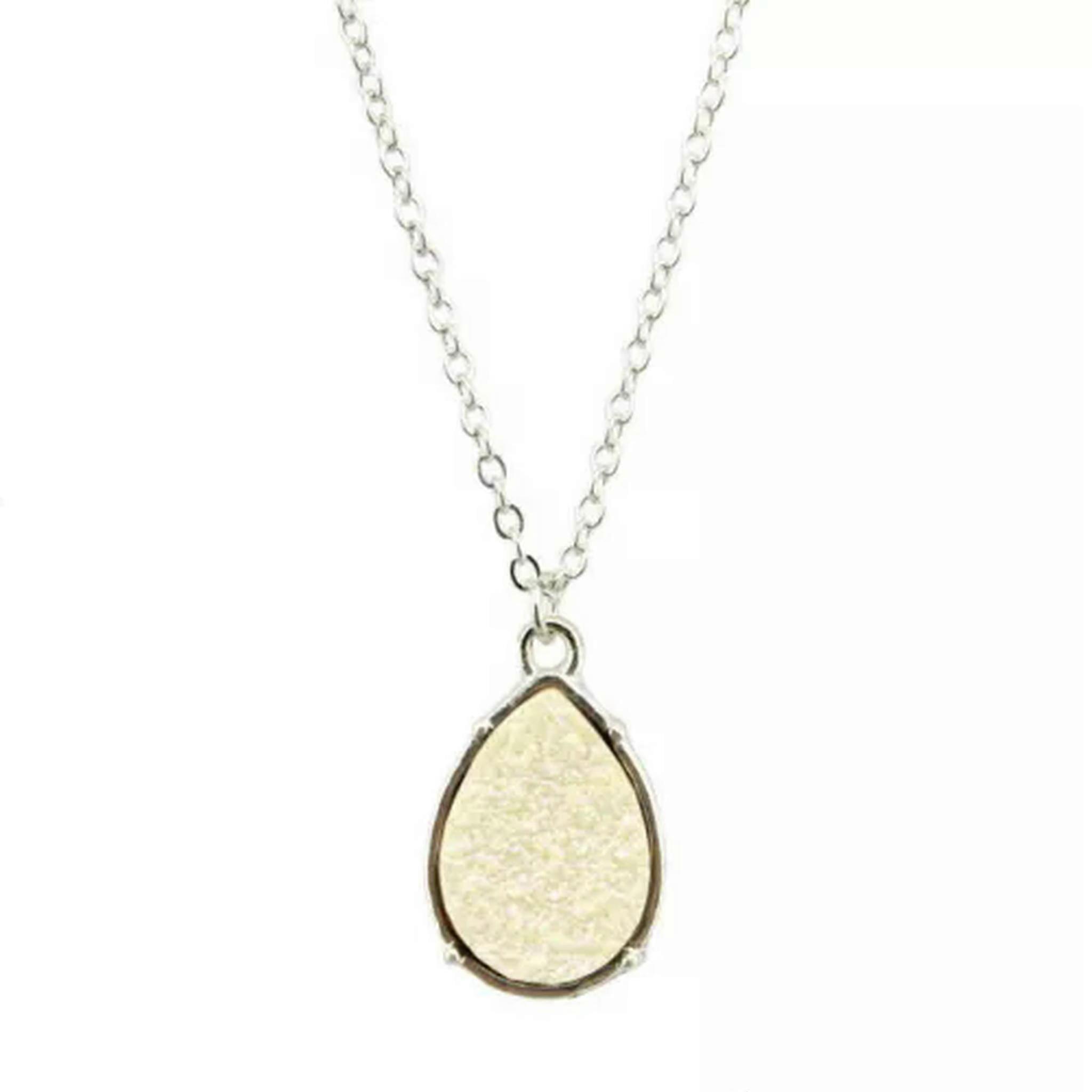RSAMD Druzy Quartz Drusy Teardrop Pendant Long Necklace for Women Custom Jewelry-Silver White