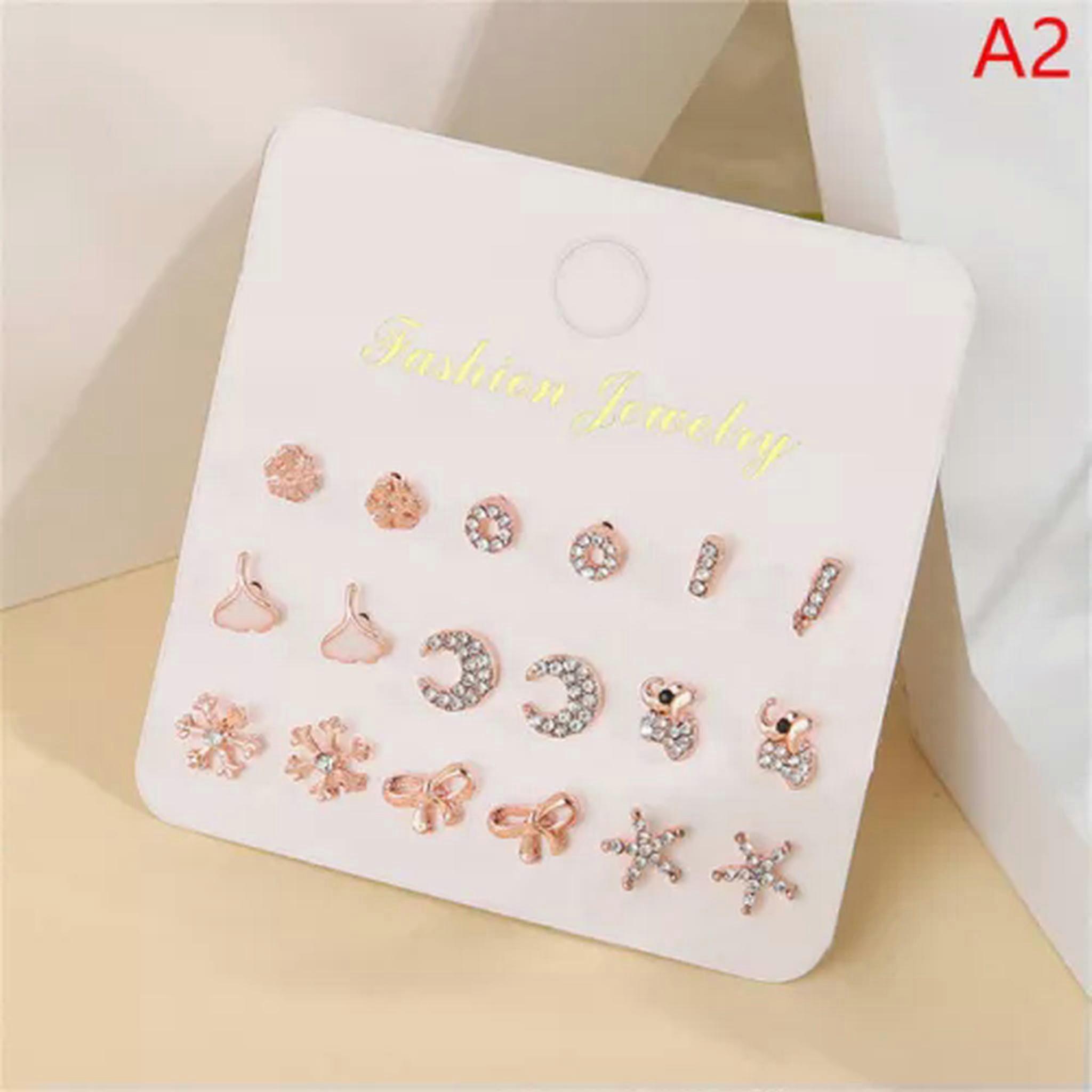 RSAMD 12 Pairs/Set Women's Pearl Flower Crystal Mix Design Studs Earrings Girls-A2