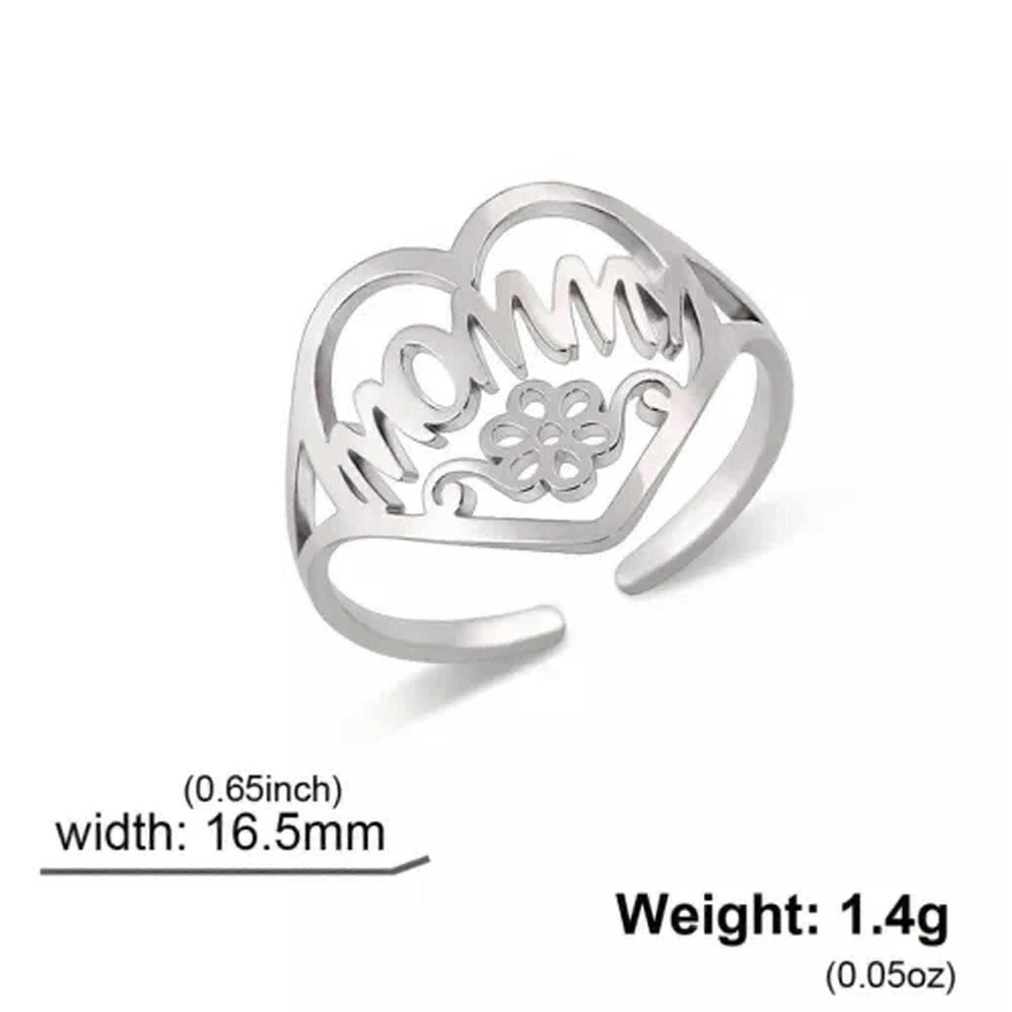 RSAMD Mommy Letter Flower Love Heart Rings Stainless Steel Adjustable for Mom Jewelry-Resizable-Steel