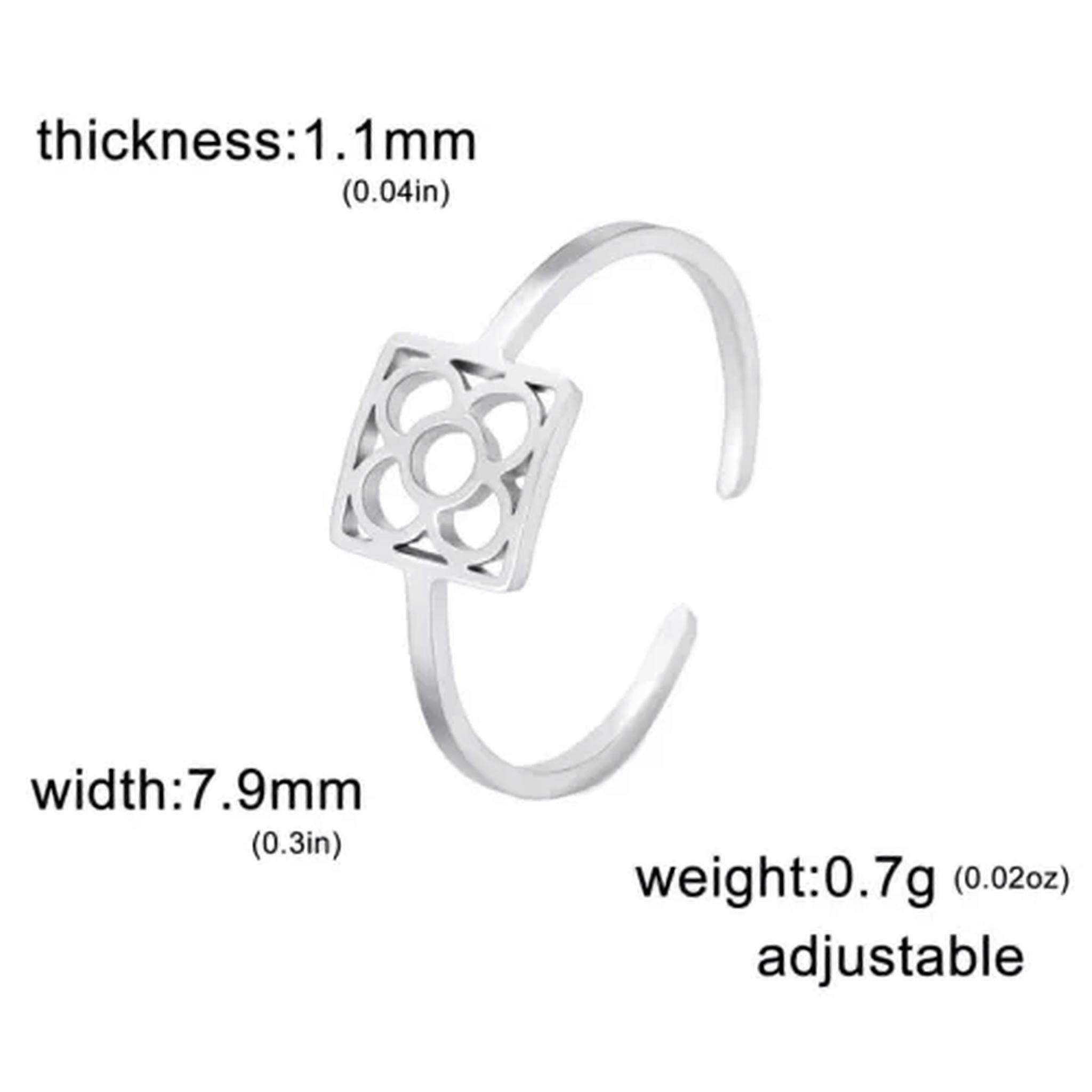RSAMD Barcelona Flower Square Ring Women Adjustable Stainless Steel Fashion Jewelry-Resizable-Style A Steel
