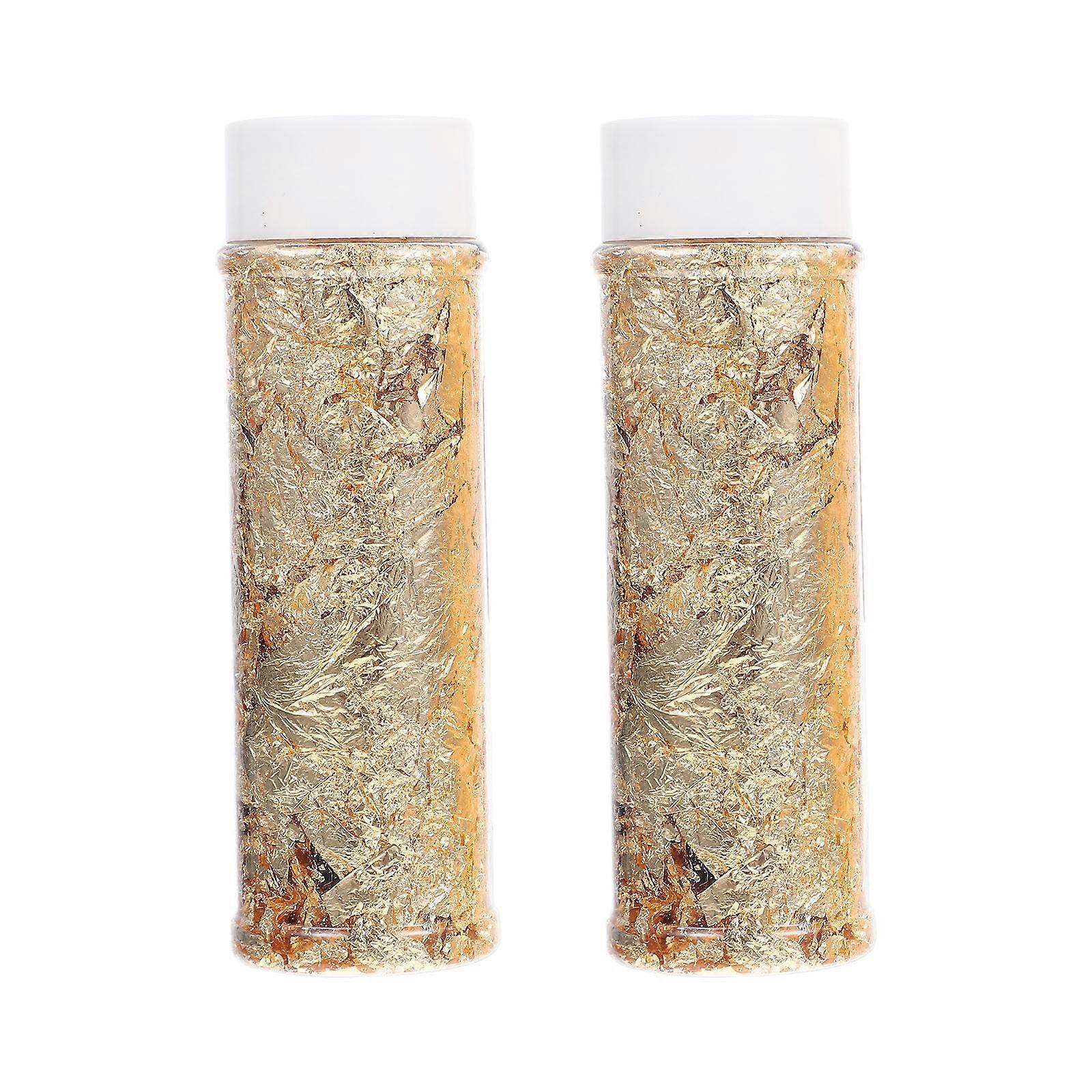 Edible Gold Leaf, 2 Bottles of Cake Decorative Gold Foil Cupcake Glitter Sprinkles DIY Gold Foil Flakes