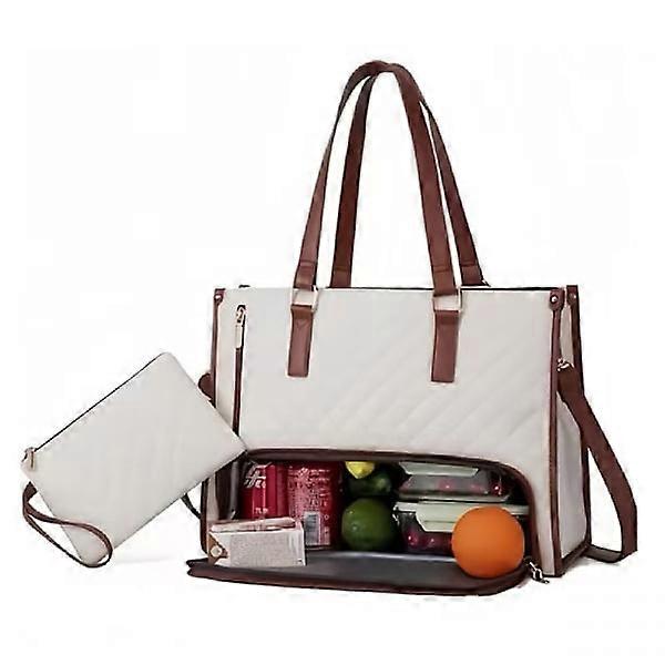 Insulated Lunch Box for Women, Crossbody Laptop Bag for Women 42*30*18cm White brown
