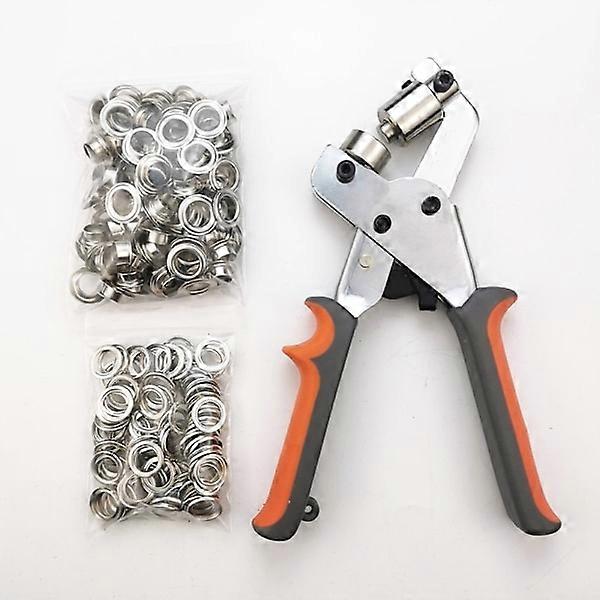 Eyelet pliers, professional eyelet making set with 100 pieces (inner diameter 10.5 mm) metal eyelets for leather fabric tarpaulin PVC curtain chisel