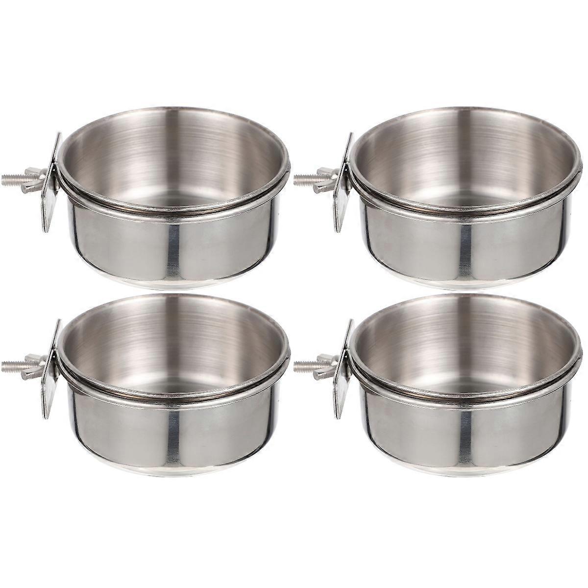 2pcs Stainless Steel Bird Feeding Dish Cups 2 Sets Parrot Bowl Clamp Holder Coop Cup Bird Cage Water Bowl for Parakeet Cockatiels Budgie Chinchilla