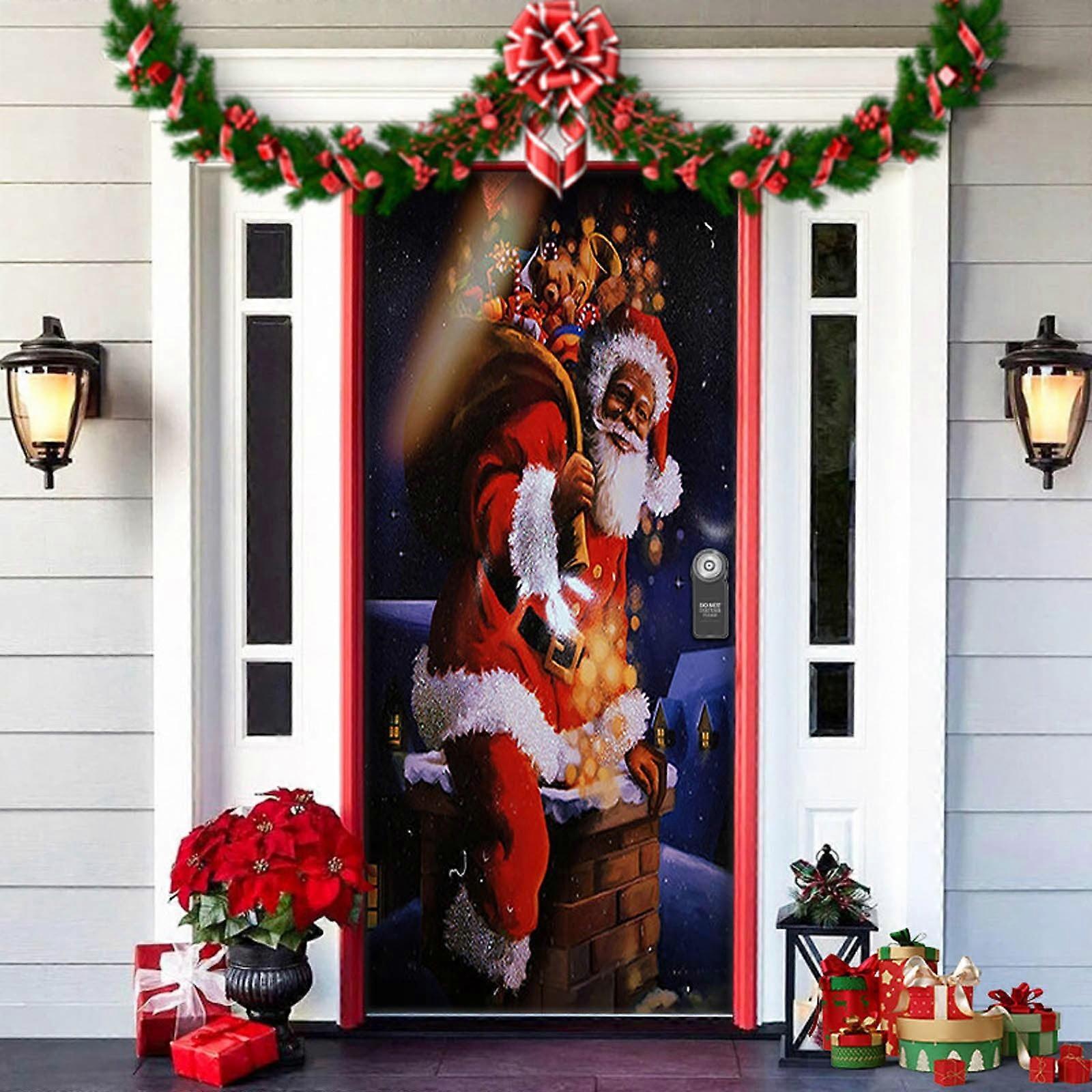 TAIAOJING Christmas Decorations Door Cover Merry Christmas Hanging Cloth Holiday Party Layout Scene Background Cloth Photography Banner