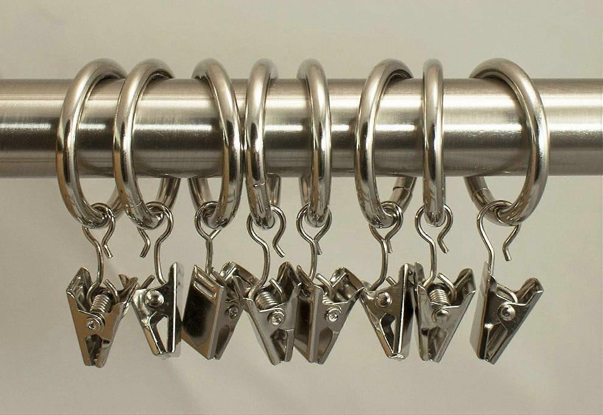 Urbanest 1" Metal Curtain Rings With Clips, Set of 16, Brushed Steel
